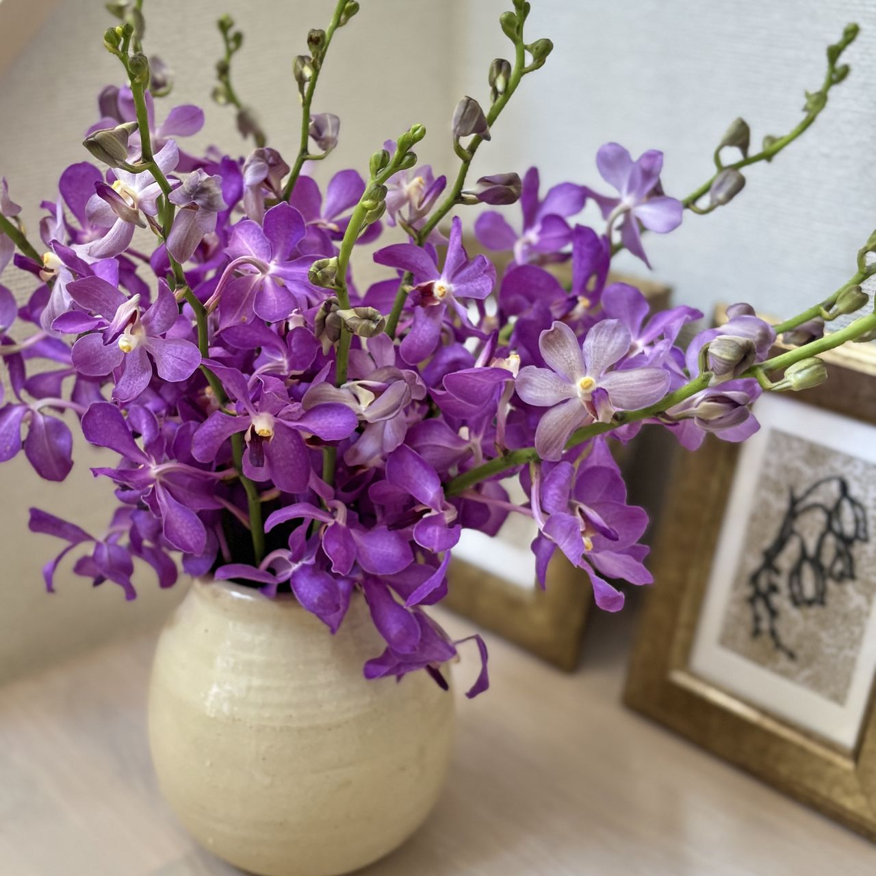 たっぷり入ってお買い得!モカラ「ライラックブルー」をたっぷり束ねました。ほんのり青みを帯びたパープルがお部屋のアクセントに🍇