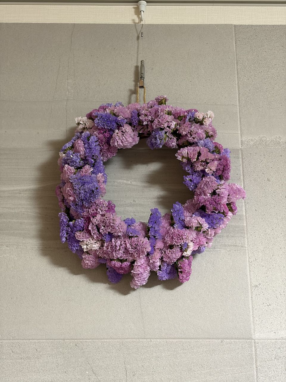 今回のは、白い花が結構咲いてました。茎もしっかりしていて、質が良いです!リース作ってみました。木の枠はDAISOで買いました。こちらでも、ワイヤー含めて、買えたら便利だと思います。