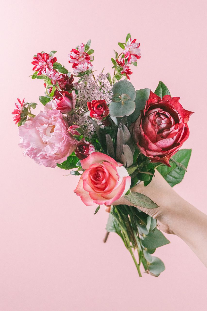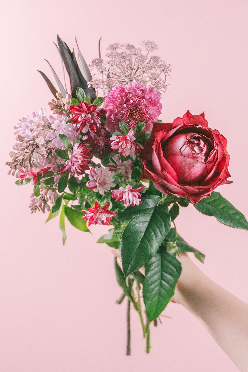 深みのある赤に、ピンクやホワイトが重なり合うマーブルカラーが印象的なブーケ💕濃淡のコントラストがはっきりと出ていて、一束でしっかりと目を引く仕上がりです。