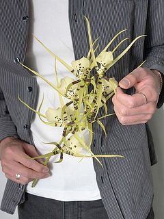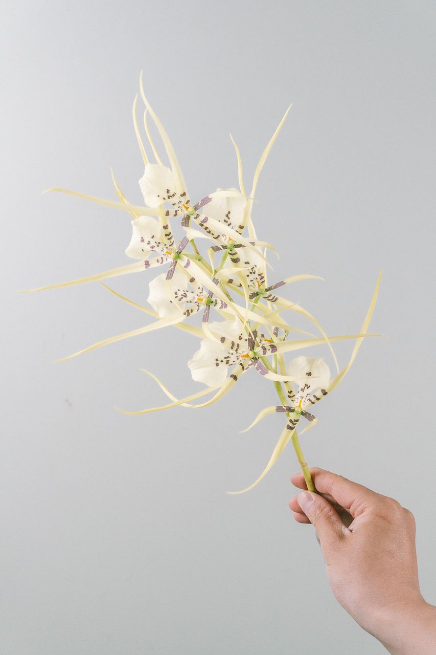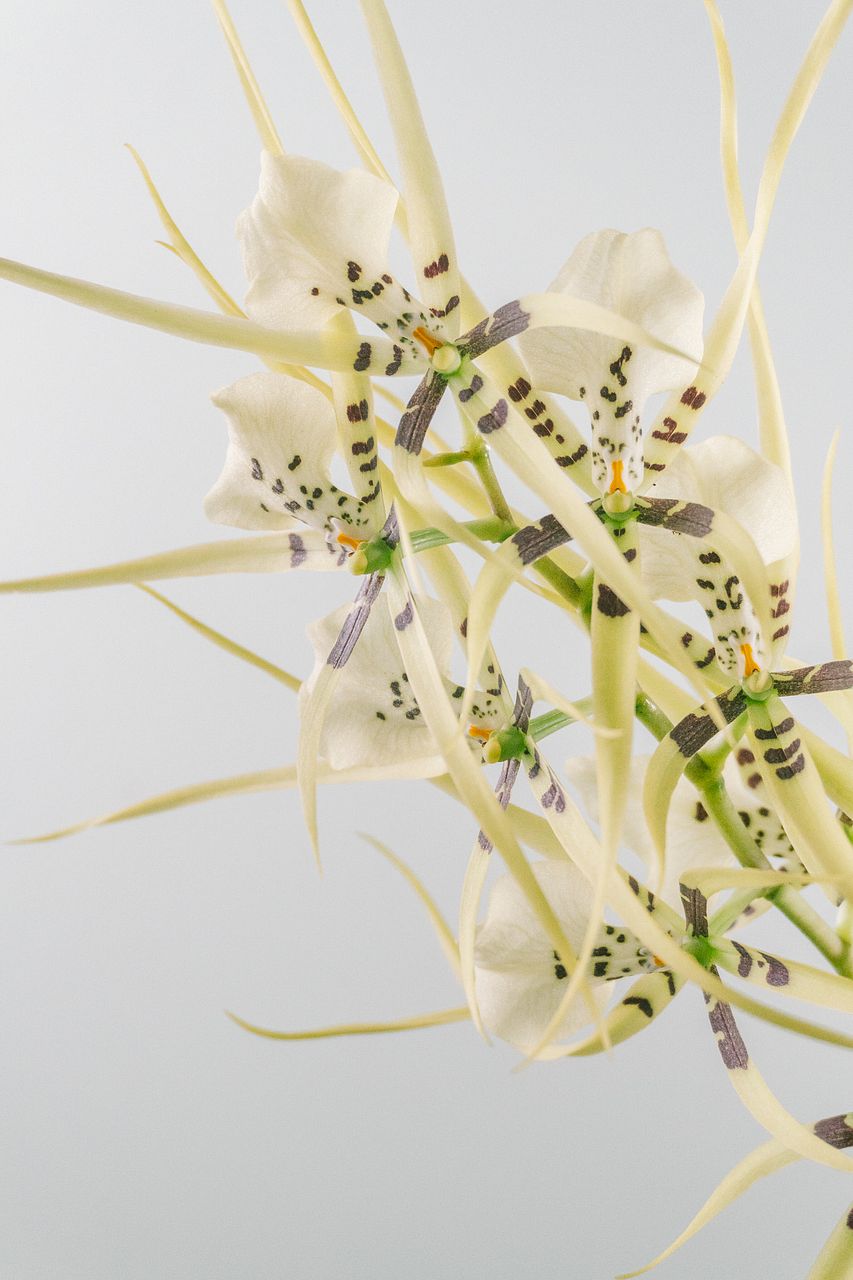 淡いクリーム色に入る繊細な斑点が、おしゃれなスパイダーオーキッド「ブラシア」