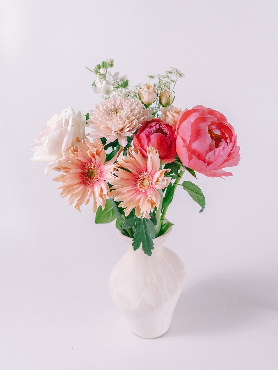 芍薬は咲き始めは濃いめのコーラルピンクですが、花が開くにつれて淡い色に変化します🪸