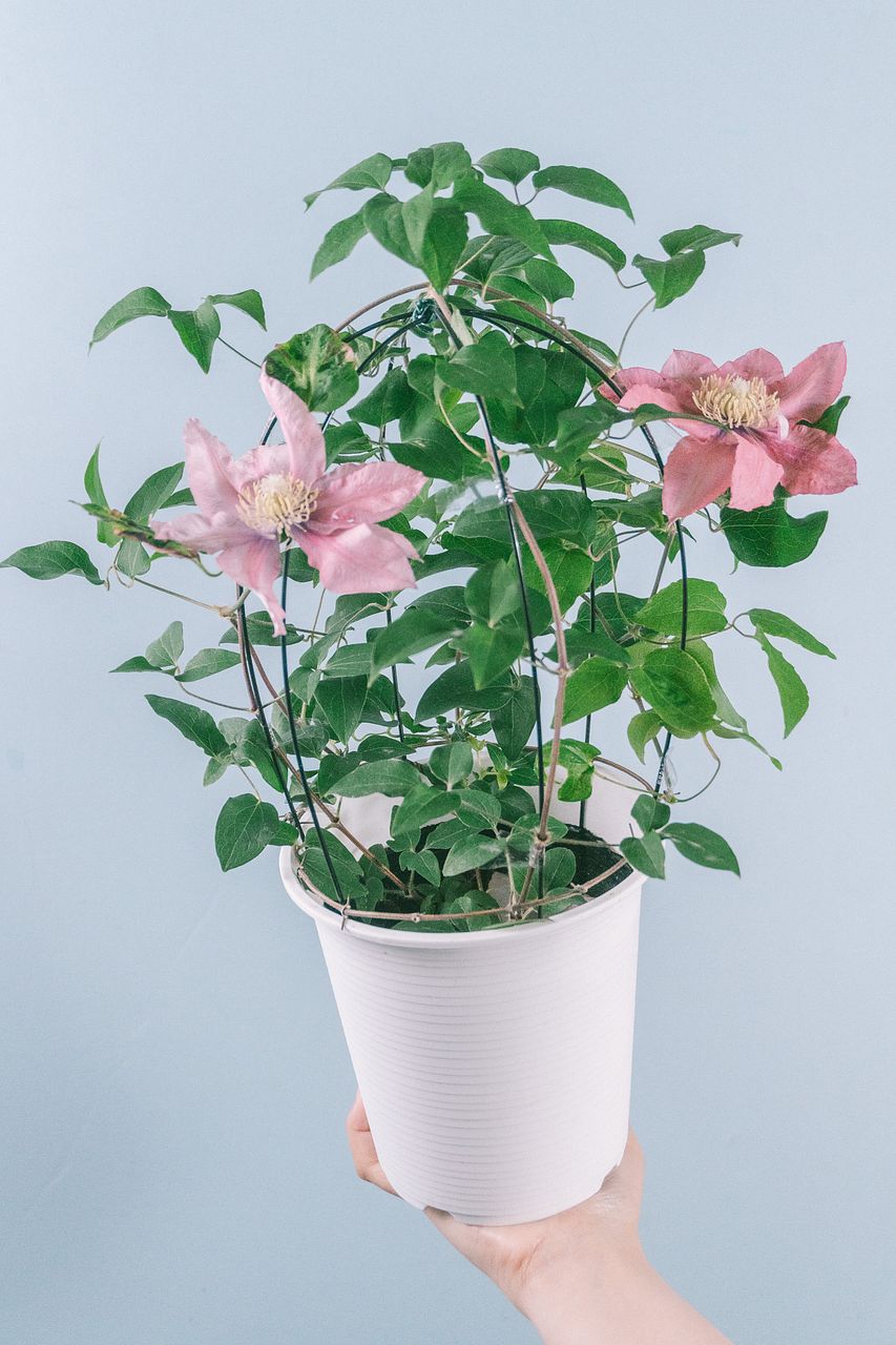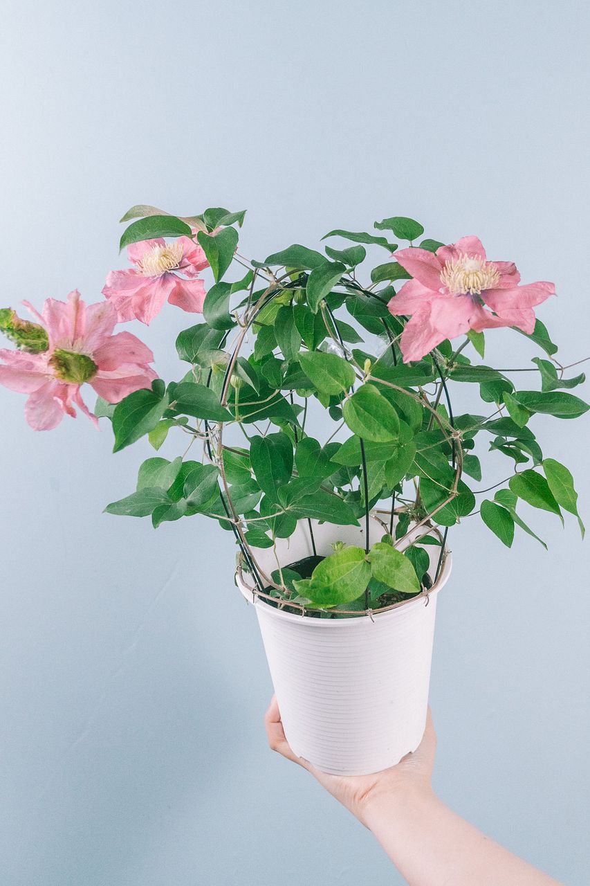 中心に向かってほんのり深まる色合いが、可憐さの中に少しの華やかさをプラス。つるを伸ばしながら咲く姿も軽やかで、空間に動きを与えてくれます。