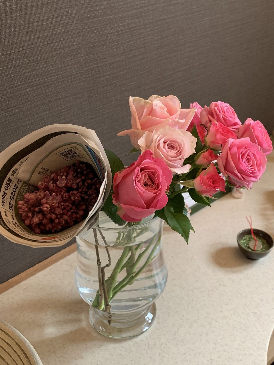 一方で、バラの数本に傷みが見られたり、ライラックの一枝が少しくったりしていたのは正直少し残念でした。