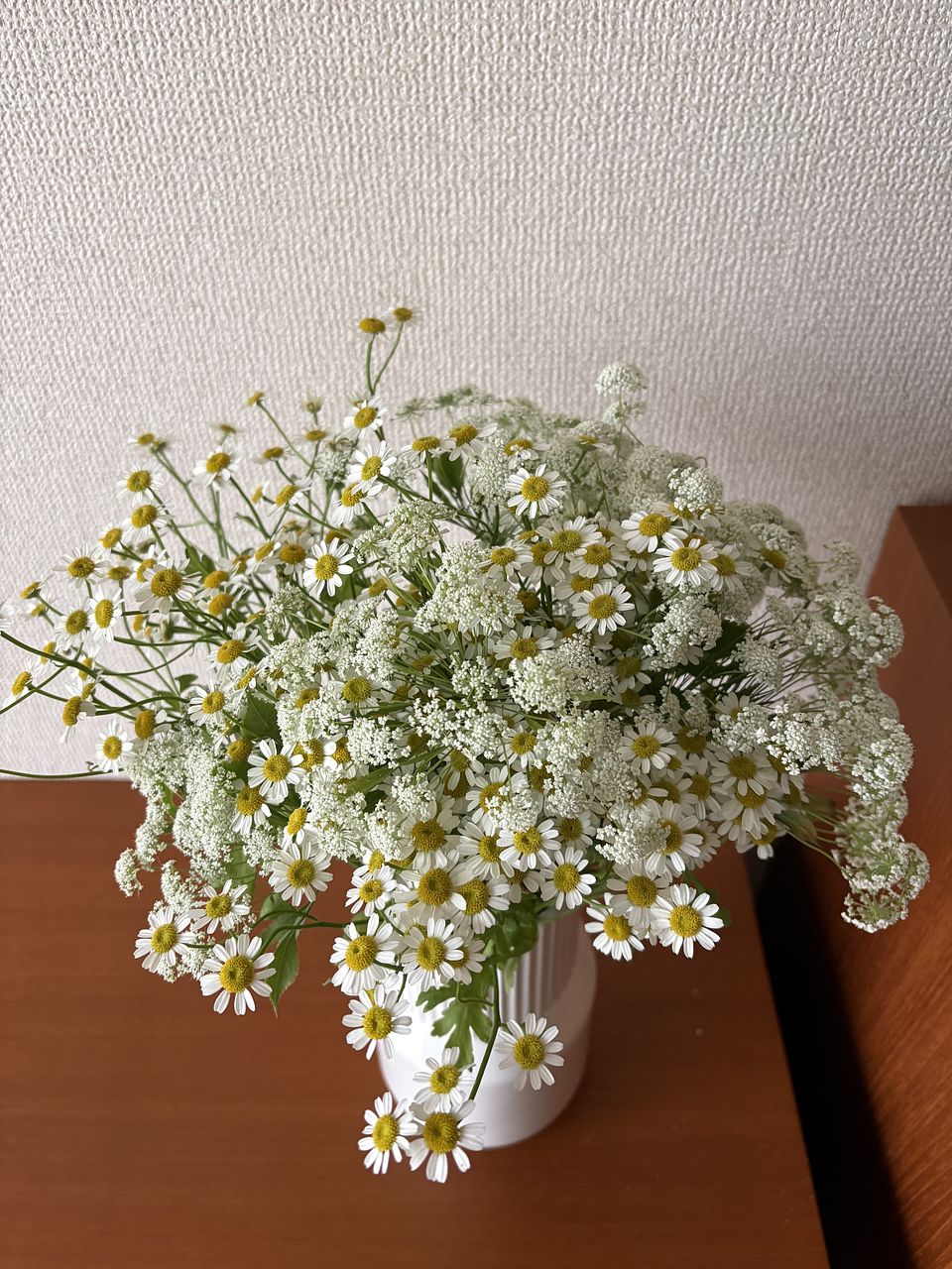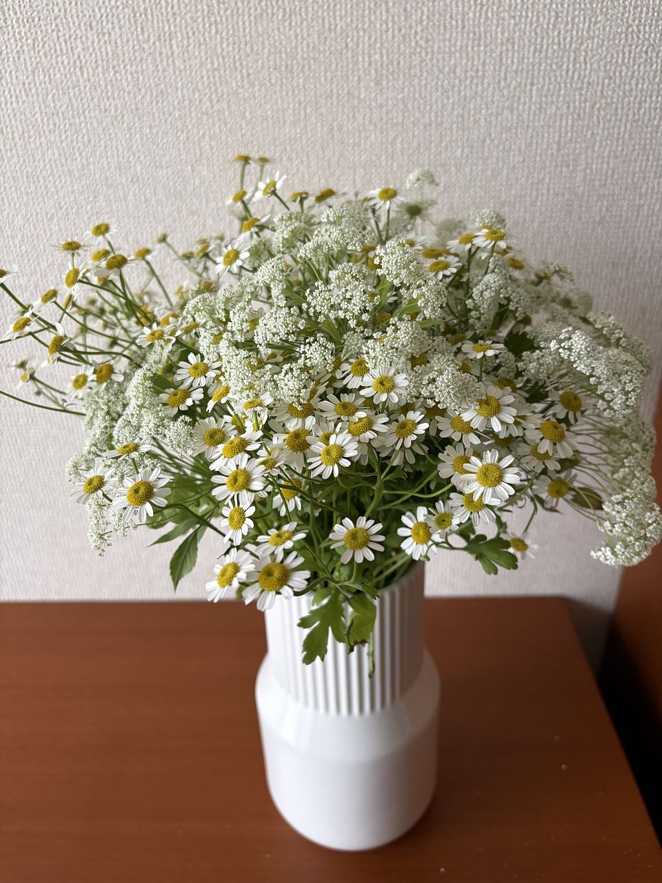 大好きなマトリカリアとレースフラワーだったので気持ちがあがりました🥰 状態も良くてリビングを明るくしてくれています。