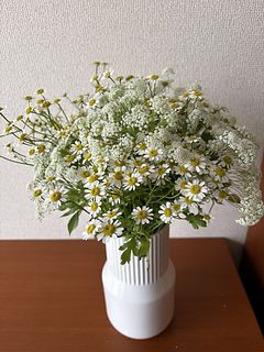 マトリカリアは皆さんのレビューで見てたより、かなりお花が小さく水あげしても元気がなくてボリュームも思ったほどではなかったです。 レースフラワーも少なくて、別々に飾りたかったけど期待はずれでした。