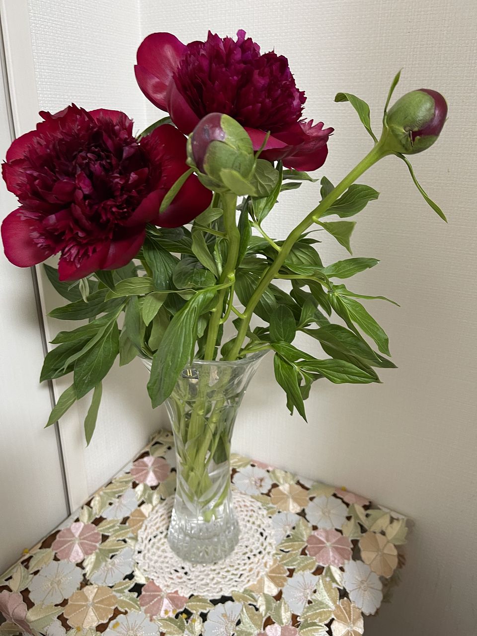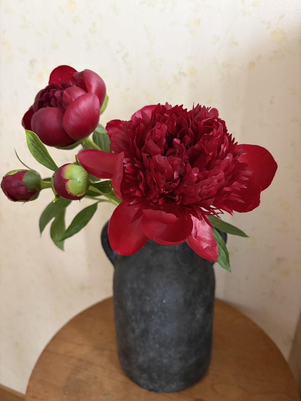 2本はもう直ぐ全開間近、あとの2本も日をずらして咲きそうでちょうど、大きさの変化があり雰囲気のある生け方が出来そうです。花びらも綺麗で色もとても深みがあり素敵な芍薬を送っていただき感謝しています。ありがとうございました!!
