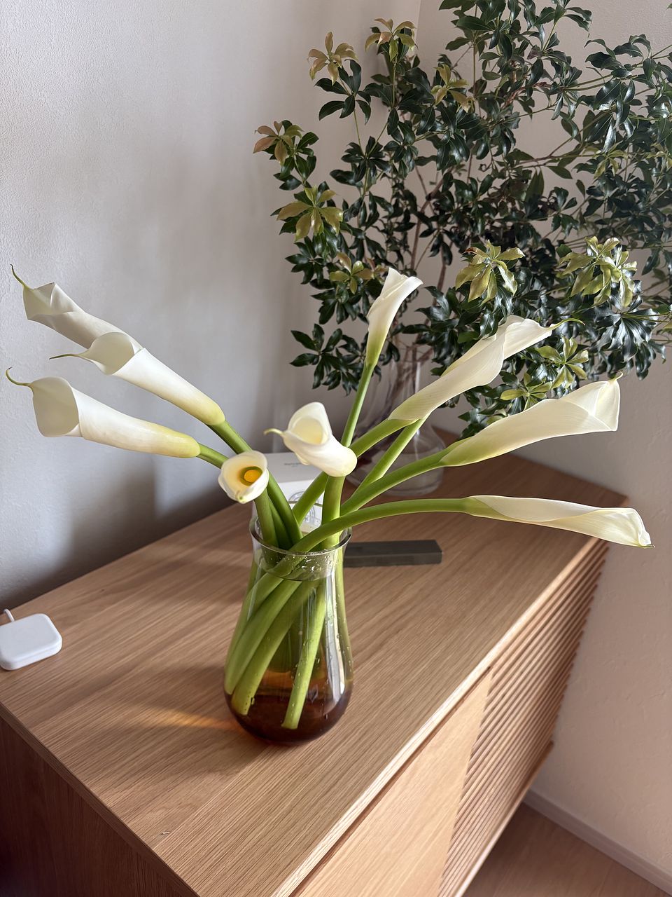 すっきりとした花姿が魅力のカラー。シンプルな白色をたっぷりお届けします🕊️