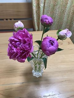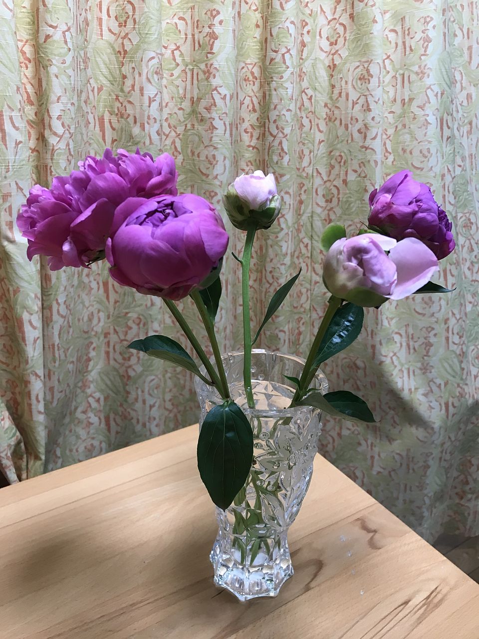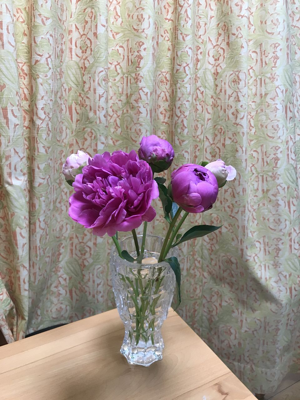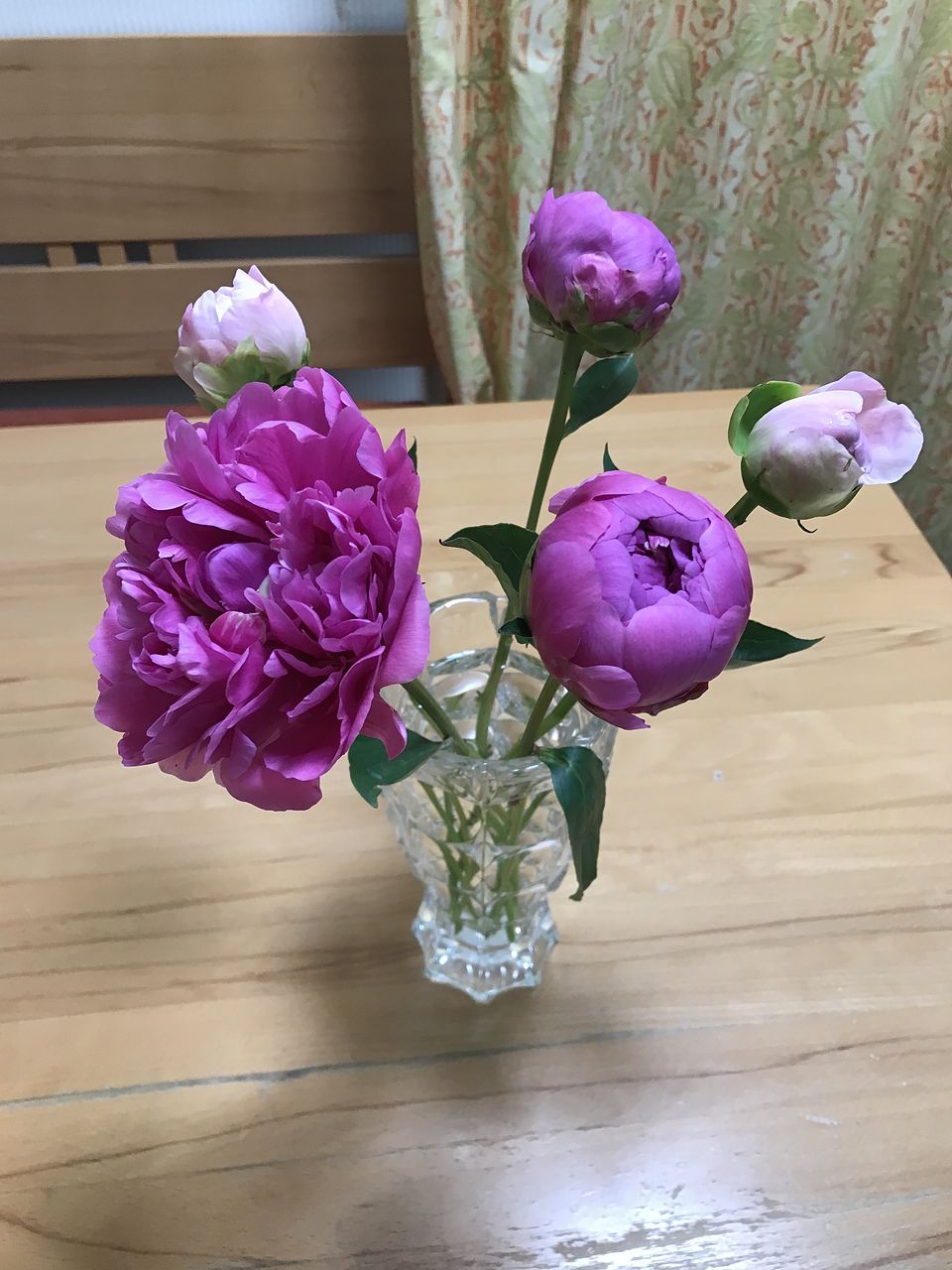 5本入って蕾2本。咲いてくれるようにモミモミ。楽しみです。香りもとっても良い。近所(北海道にはまだ芍薬がないのでうれしい