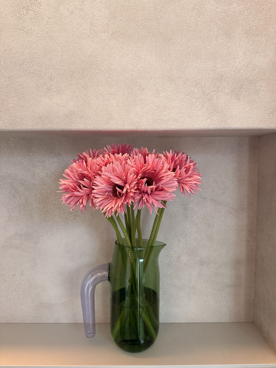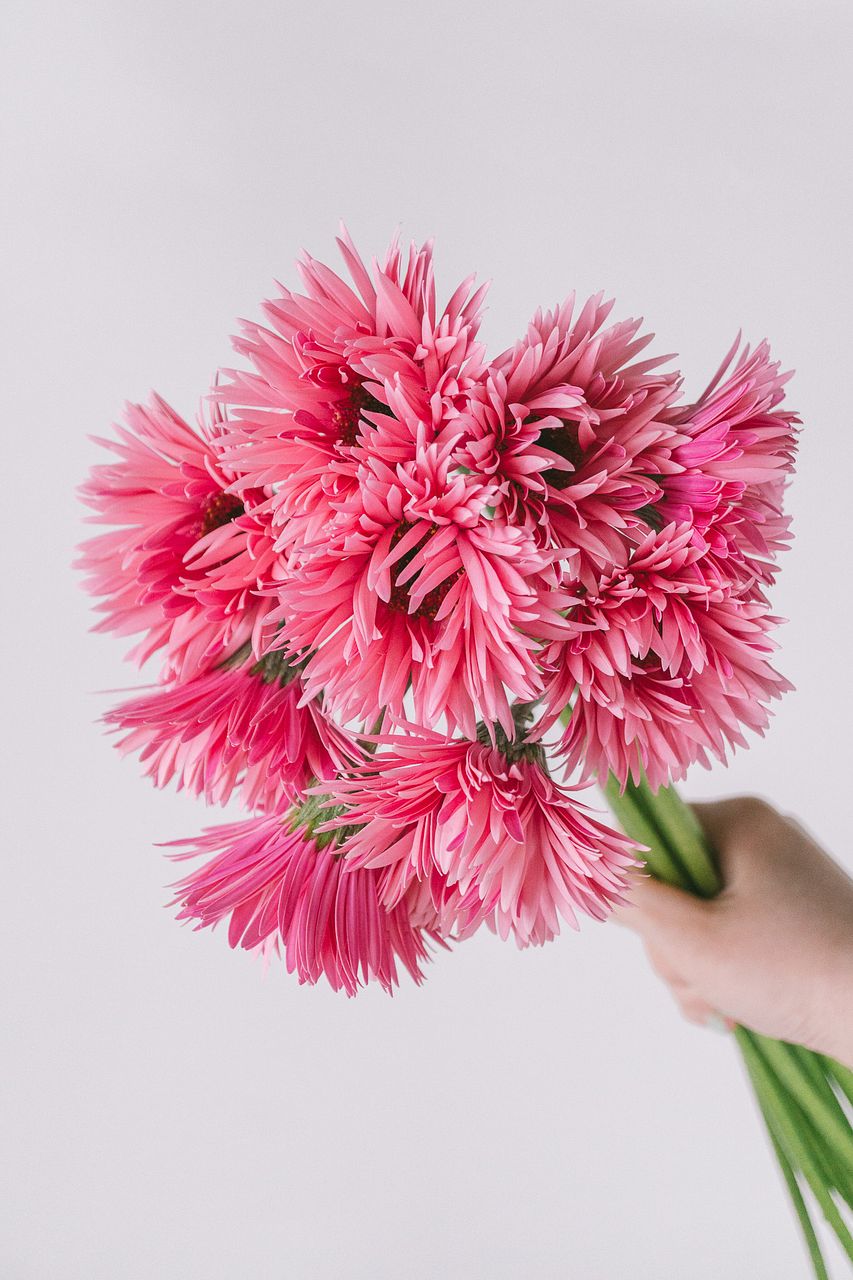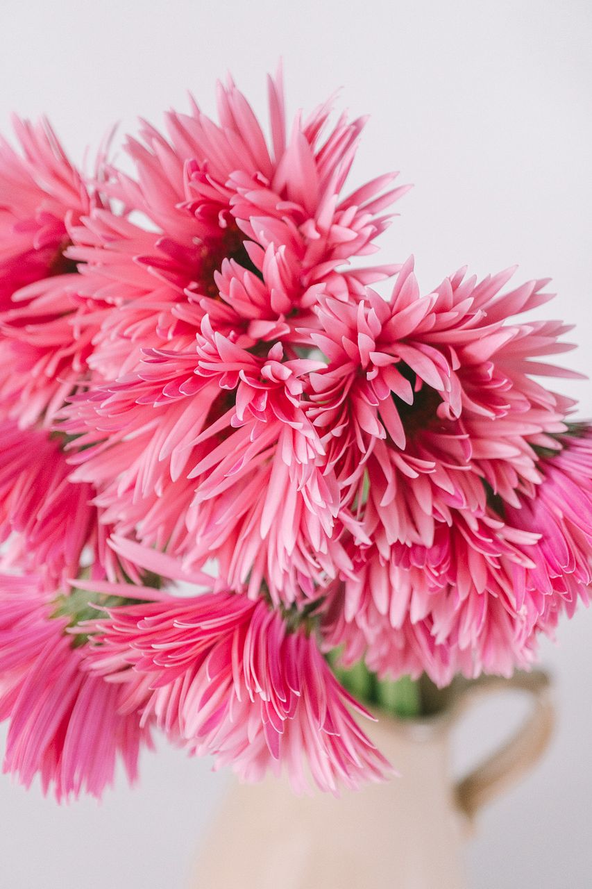 フェザーのような質感の花びらがかわいい!ラブリーなガーベラ「イギー」だけをたっぷり束ねました🩷
