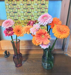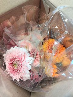 薔薇に続き2回目の利用です。今回は16本のガーベラたちが来ました。花のすぐ下の茎が赤く変色したものが1本(花の色はオレンジ)ありました。受け取ってすぐに新聞紙で巻き水揚げしましたが、真っ直ぐピンとはなりませんね。ガーベラは浅水が良いとの事、こまめに水替えとなると長持ち薬は液体タイプはあるのでしょうか。なるべく長く過ごせるように大切にしたいと思います。ともあれお花があるだけで華やいで気持ちが良いです。