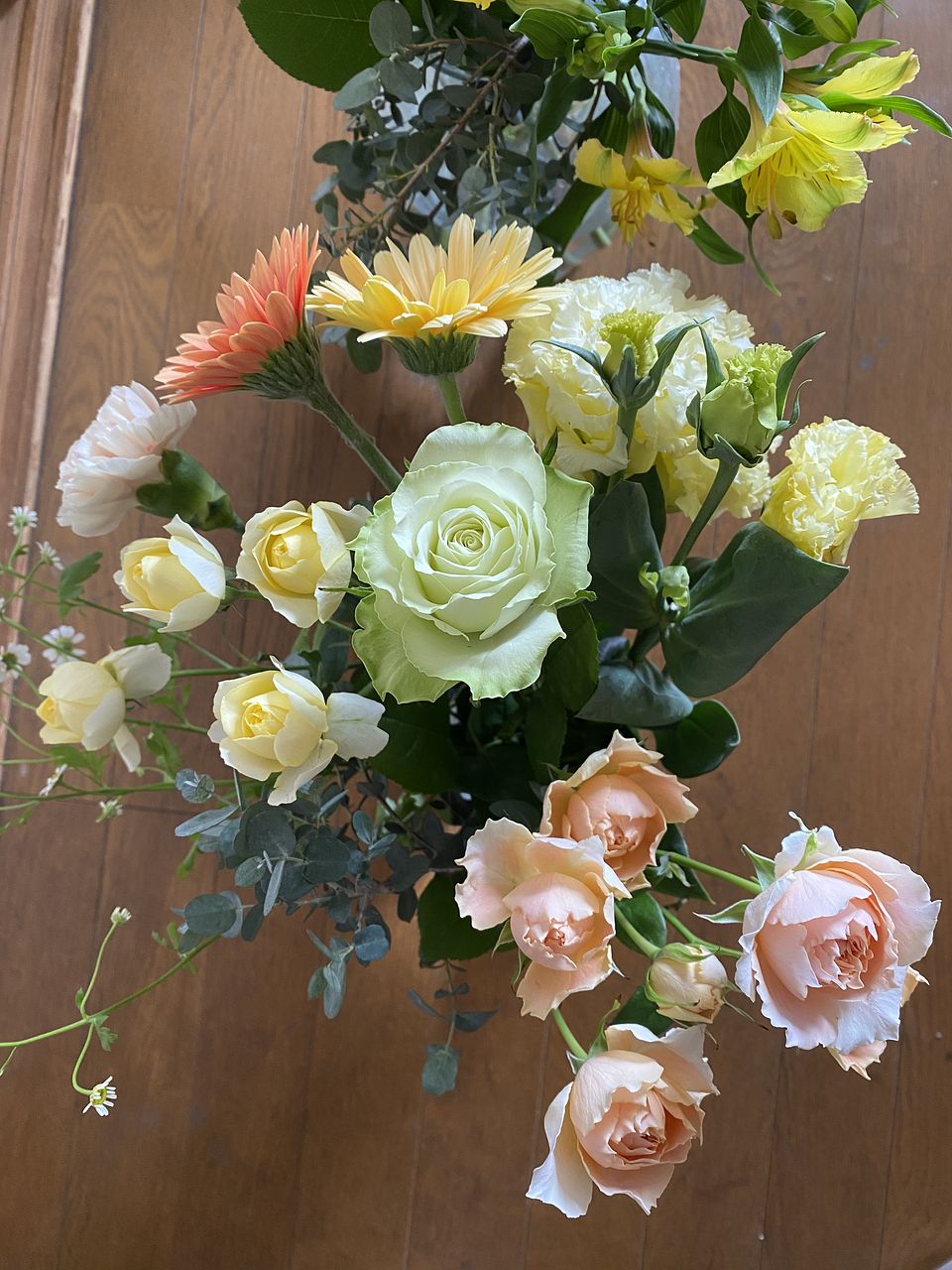 盛りだくさんのお花たちでお部屋の雰囲気もとっても明るくなりました!香りも最高です! イエローやオレンジが好きなので満足ではありますが、少しだけホワイト系やピンク系が混ざっているとよりアクセントになって素敵かなと思いました。
