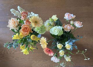 2束、全く同じではない、というのがよかったです。 1束だけだと、花が一種類ずつしかないので、いけたときの統一感がなかったかも。 バラ、カーネーション、ガーベラ、ひまわり、はどちらの束にもあり、折れやしおれたりもなく、素敵な物が届きました。