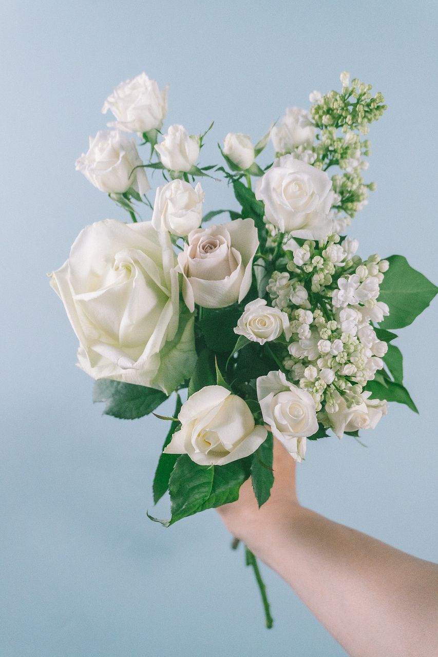 みんなが憧れる純白のライラックを中心に、エレガントなブーケをお届けします。旬のライラックとバラの季節感あふれるお花をセレクト。そのとき一番美しい花たちをお楽しみください。