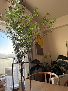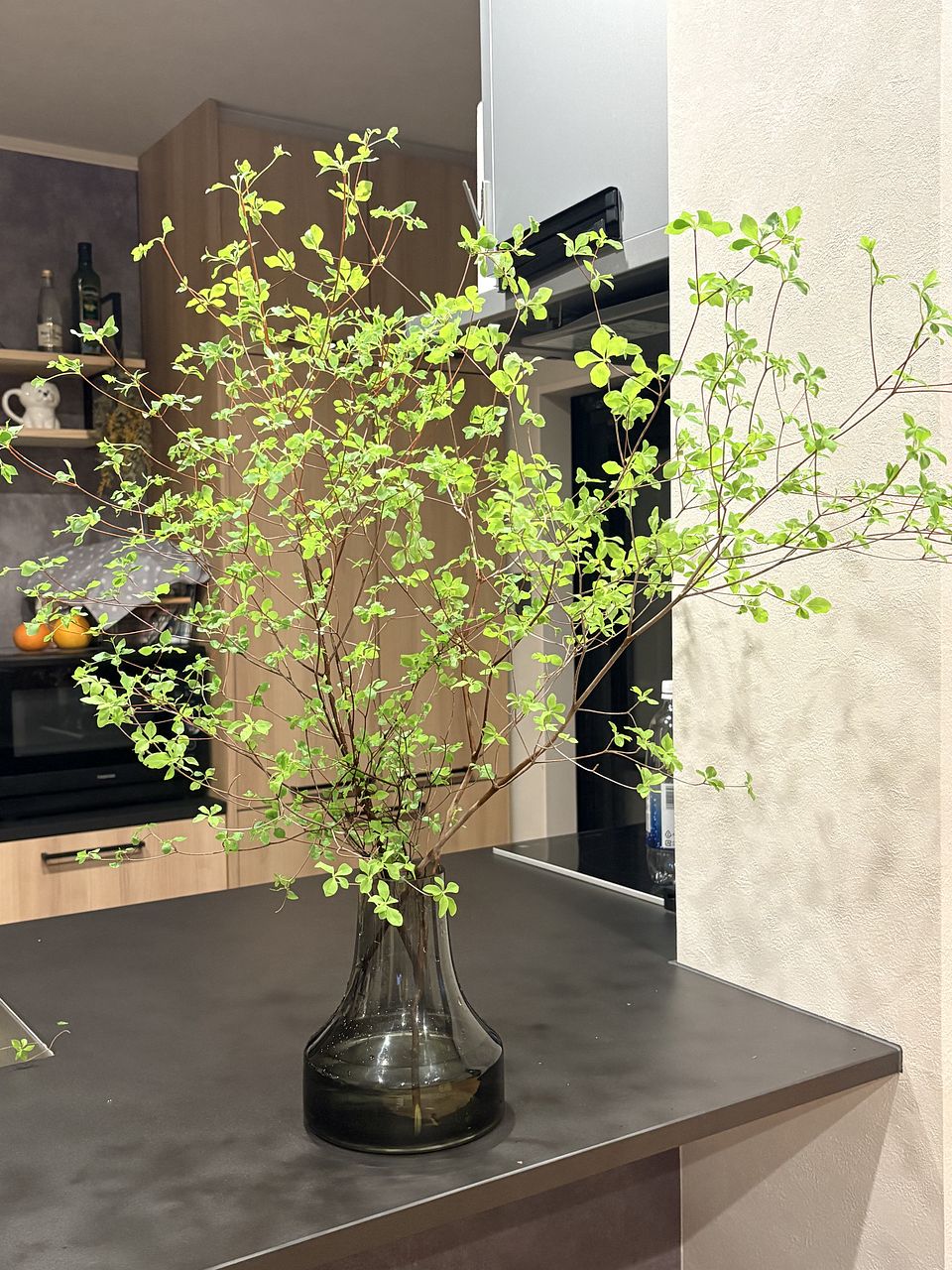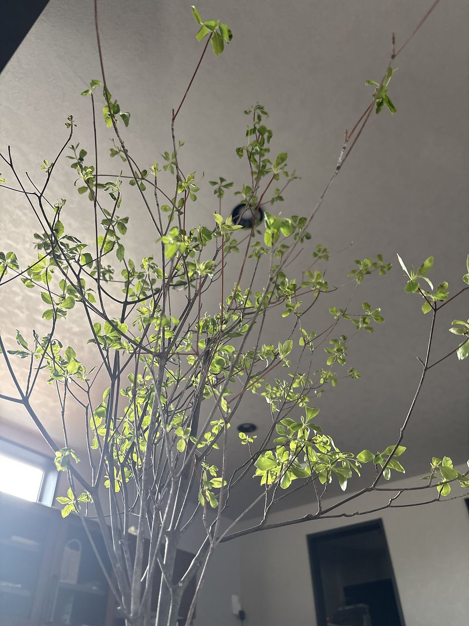 若葉の緑が爽やかでリビングが華やかになりました。 枝が太くて枝切りバサミでないときれなかったので購入を考えている方は注意が必要です。