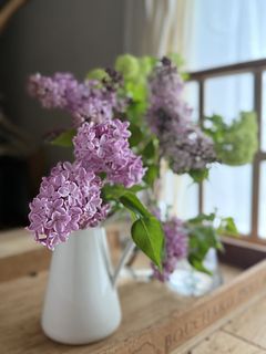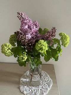 ライラックを切花では初めて購入しました。ピンクから紫がかった大きな房で、組み合わせのスノーボールとの色合いもボリュームも大満足の花束でした。