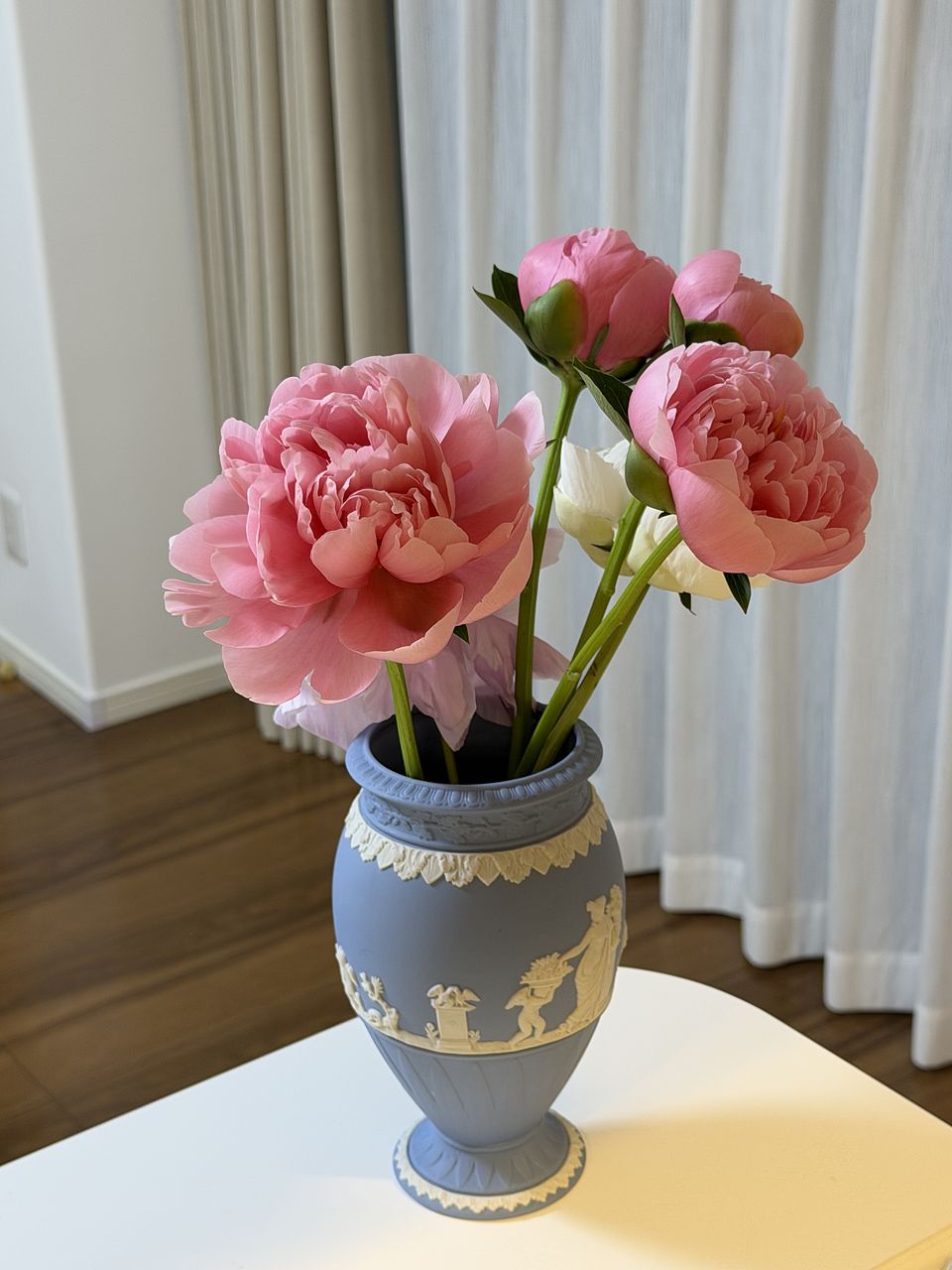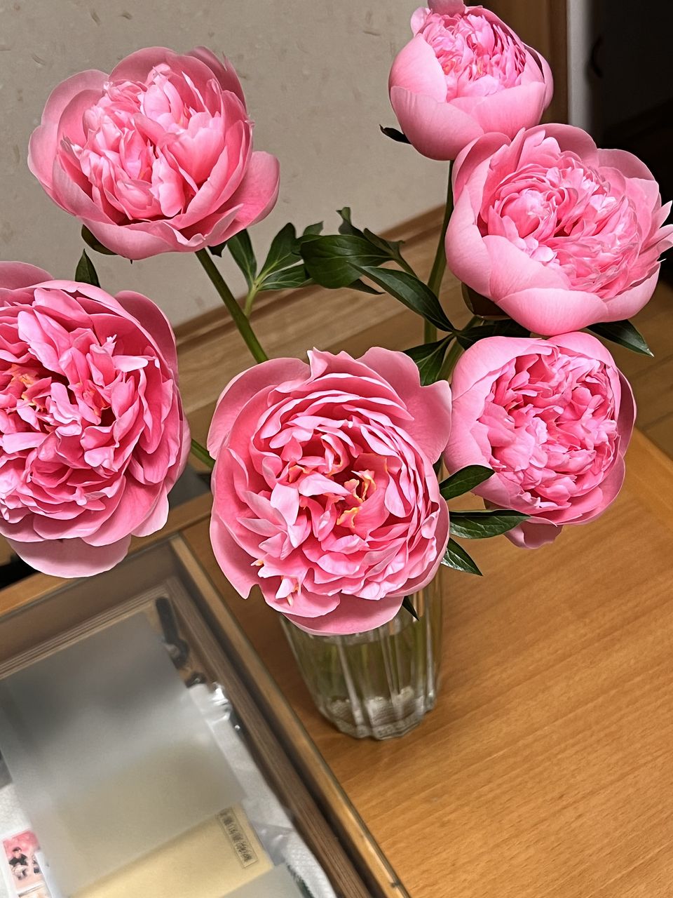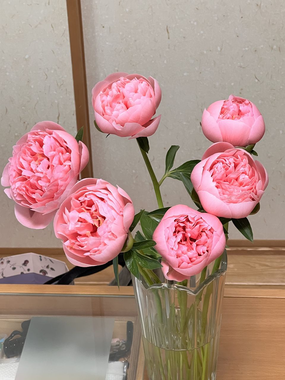 6本中5本は蕾がほころんでいて、1本は先に色が見えるけれどまだ固めの蕾でした。