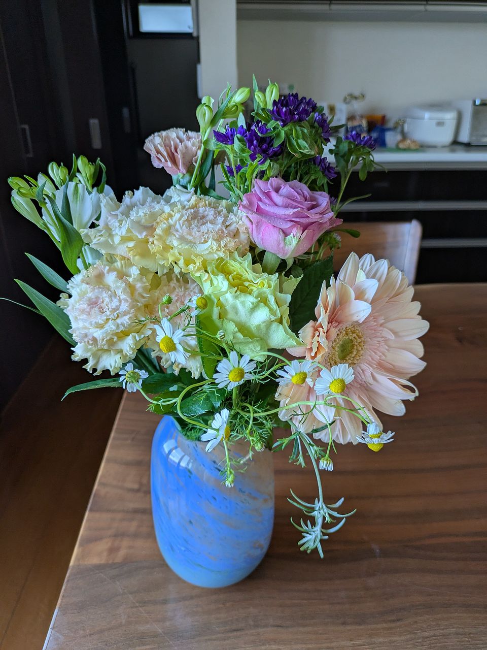 癒されたいよ〜なんでもいいから花届けてくれ〜とヘトヘトのときに注文しました。自分では選ばなそうな組み合わせでたっぷり届いて大満足です。