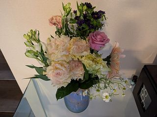 ボリュームからも花材からもあまりお得感を感じませんでした。スプレーバラも4輪とも満開で、花持ちもあまり良くなさそう。flowerさんのお花はもう何十回も買って満足しているのですが、今回はちょっと残念でした。