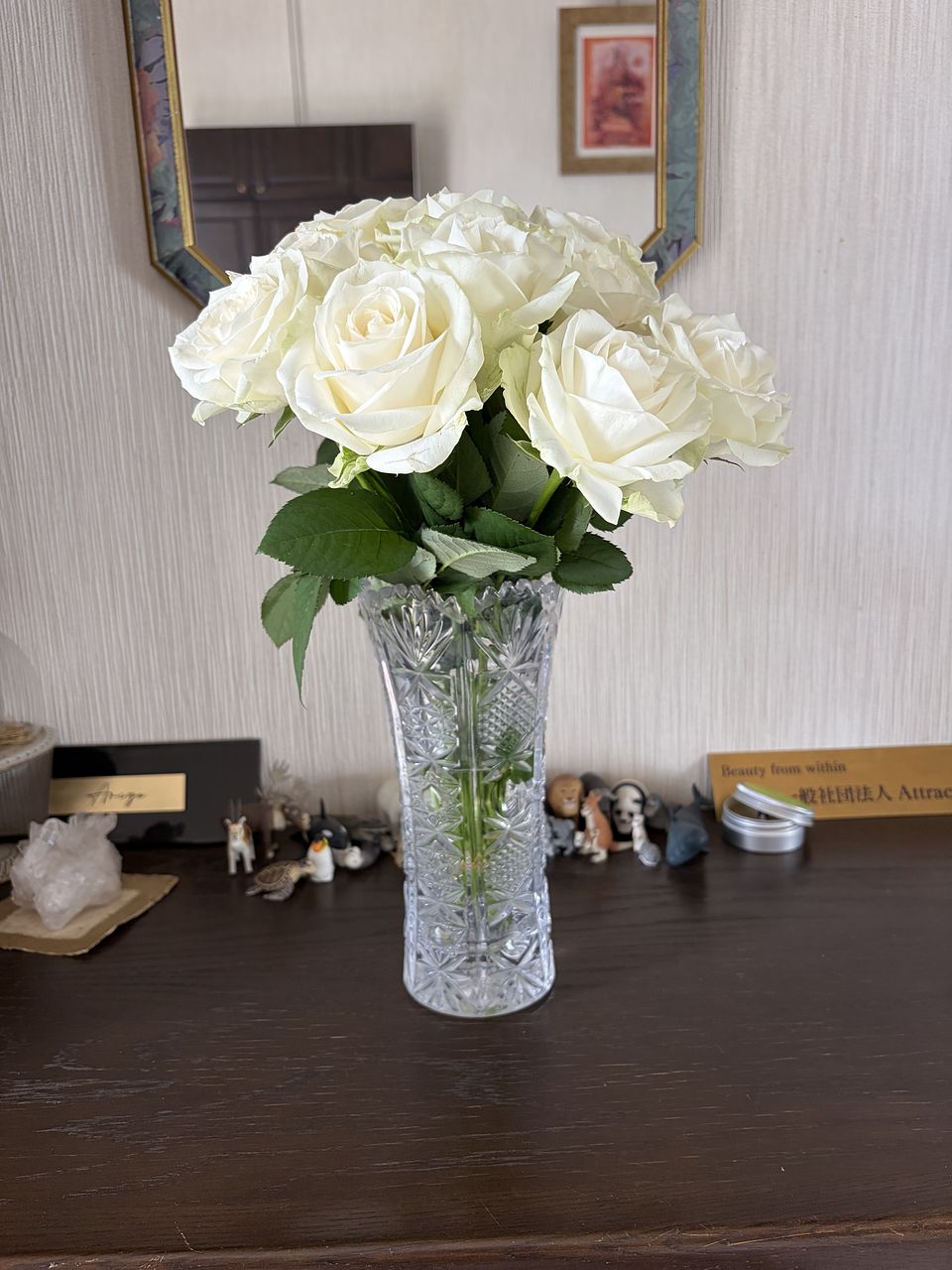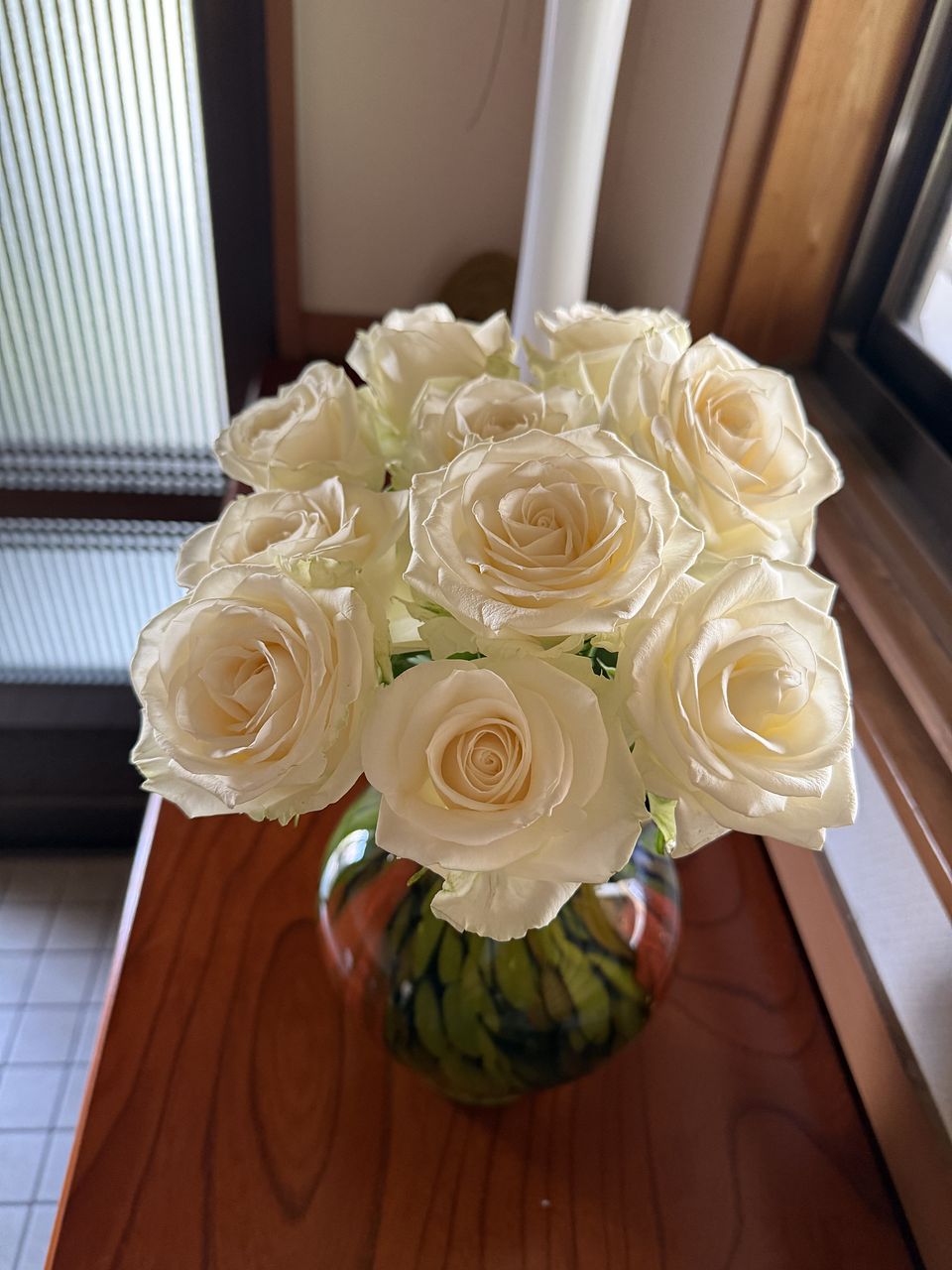 特別な日でもない日常にホワイトローズをお部屋に飾るととても贅沢な気分を味わえます ありがとうございました😊