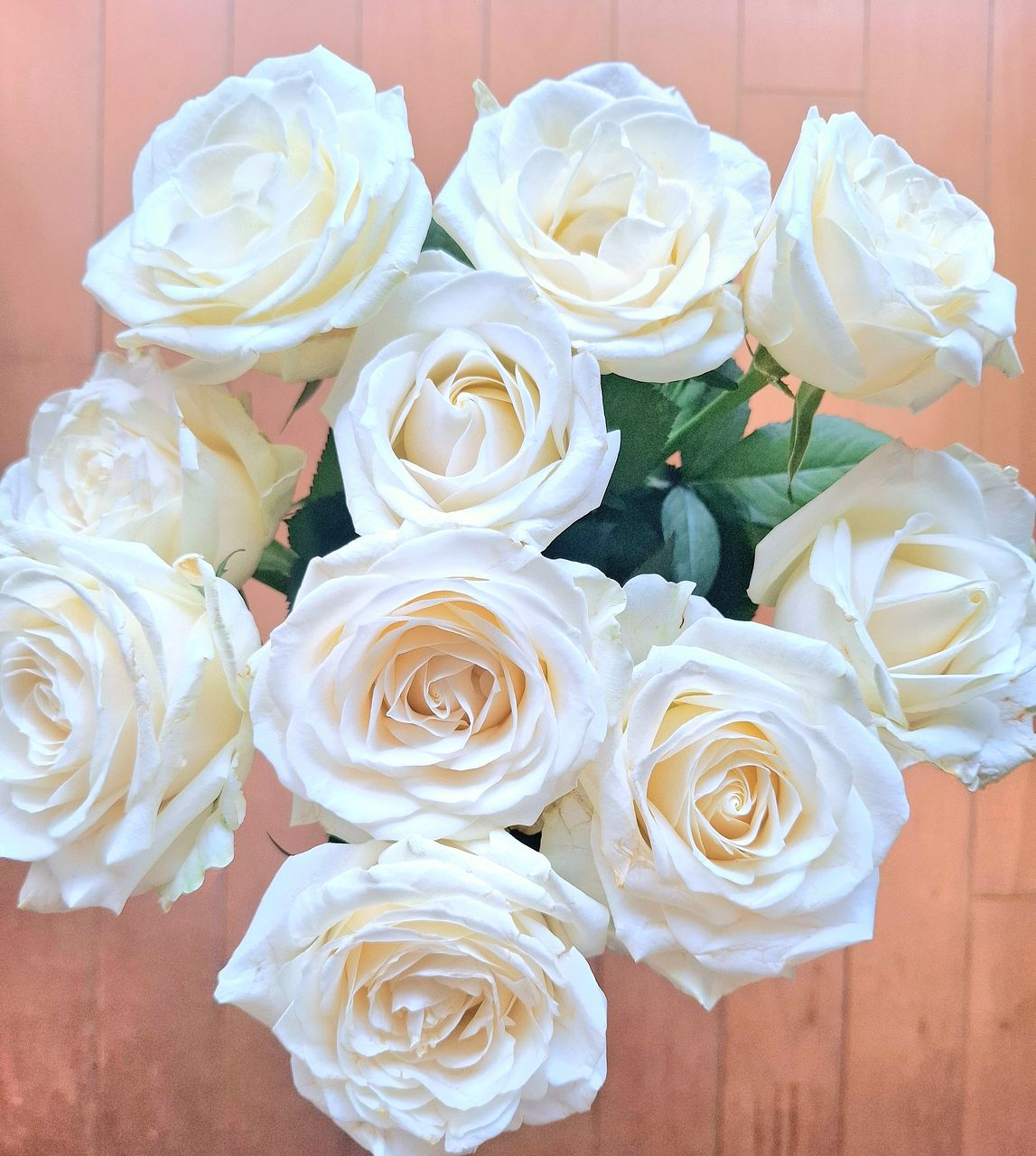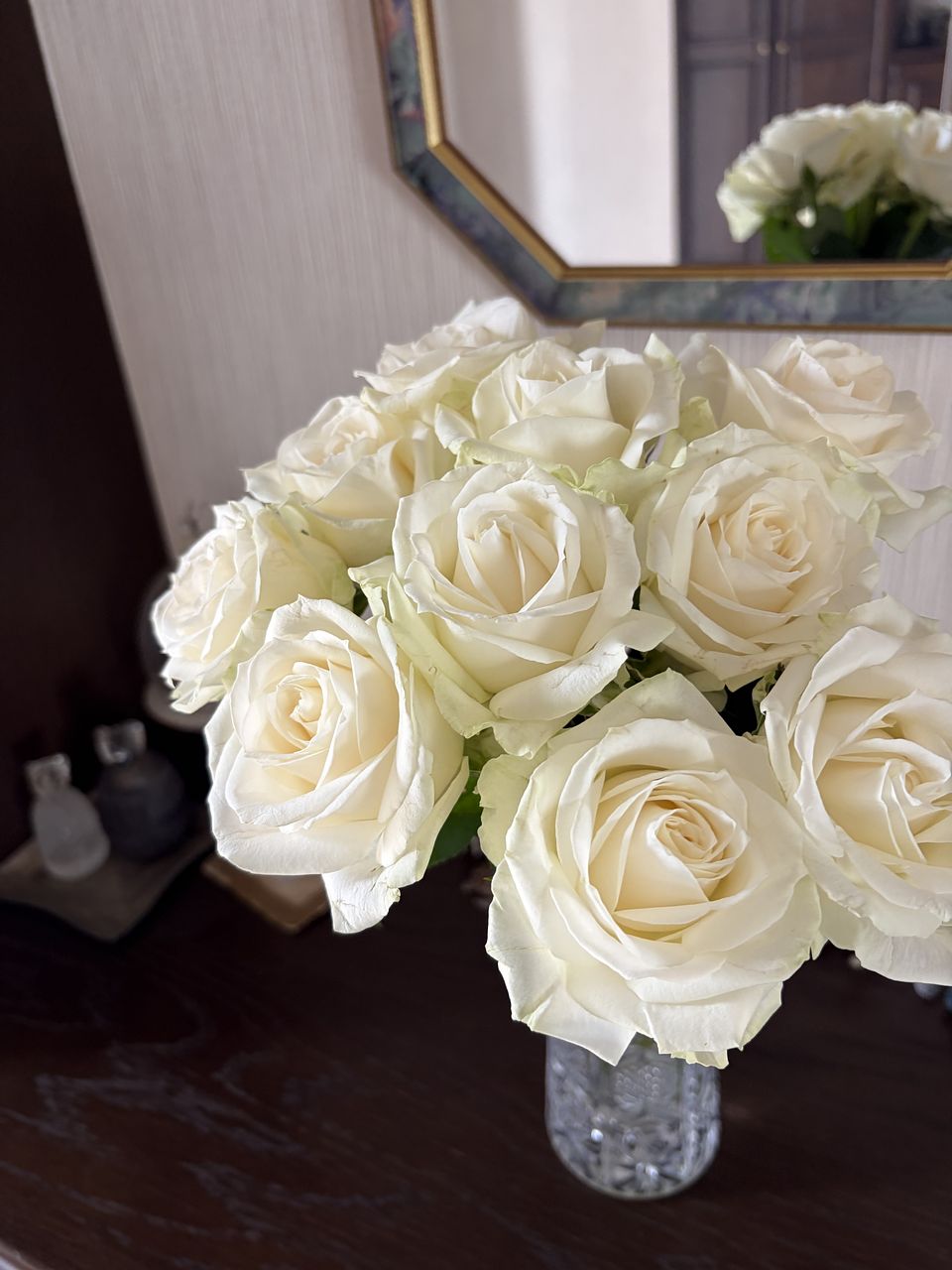 はじめてホワイトローズを購入しました🤍ボリュームいっぱいで、飾るだけで一気に華やかなお部屋になりました✨