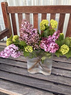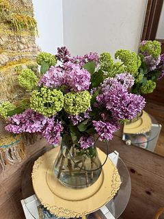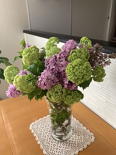 ライラックを切花では初めて購入しました。ピンクから紫がかった大きな房で、組み合わせのスノーボールとの色合いもボリュームも大満足の花束でした。