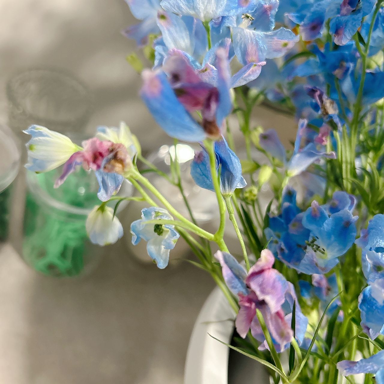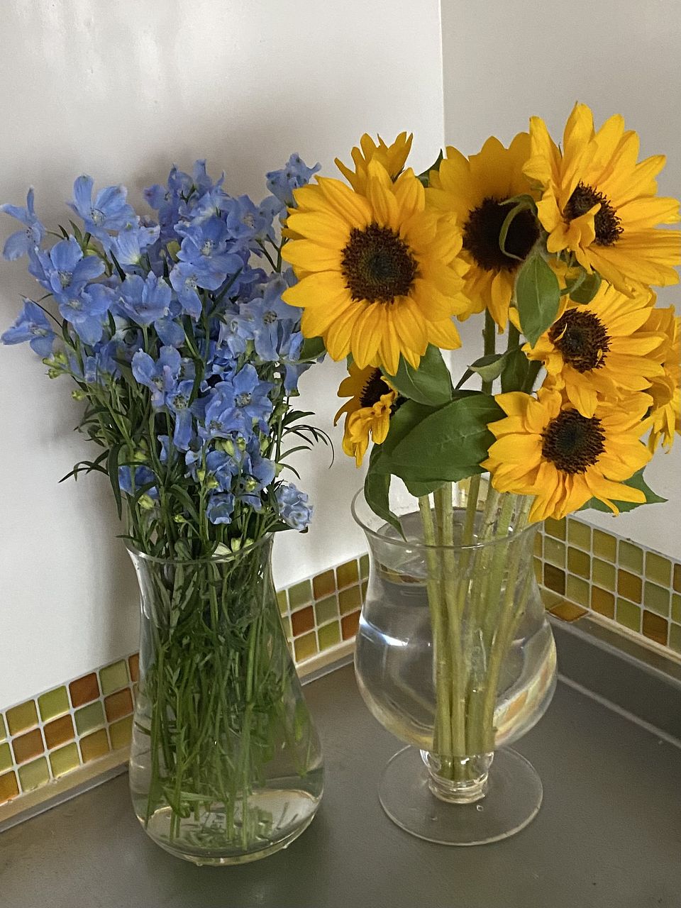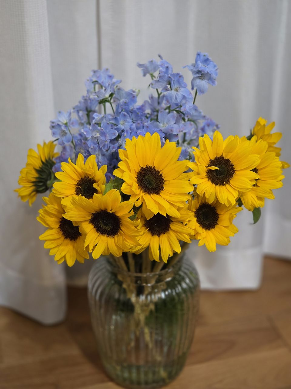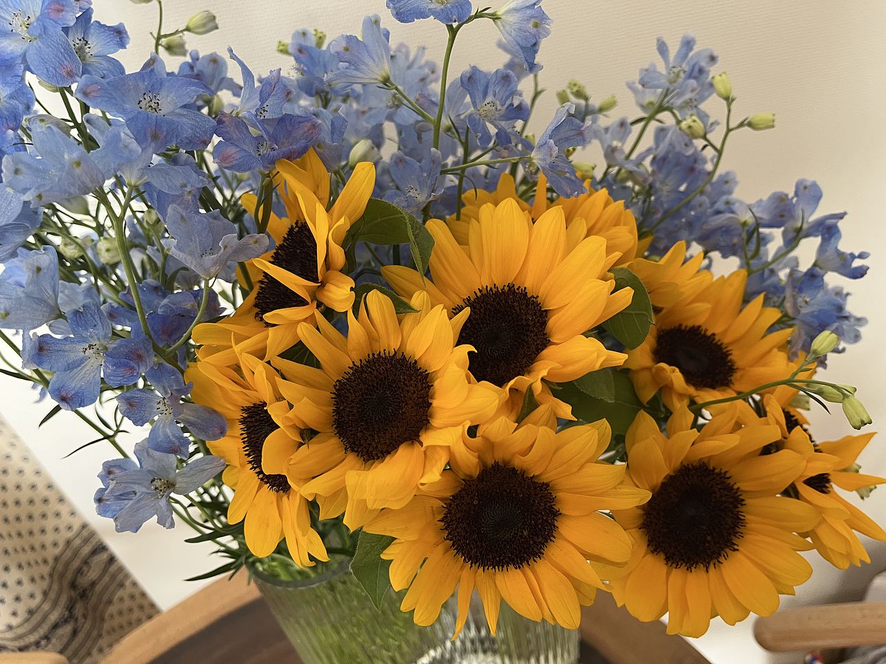 とても新鮮で爽やかなブーケが届きました。青と黄色のコントラストが素敵。さっそくキッチンに飾って、元気もらってます!