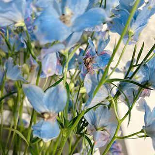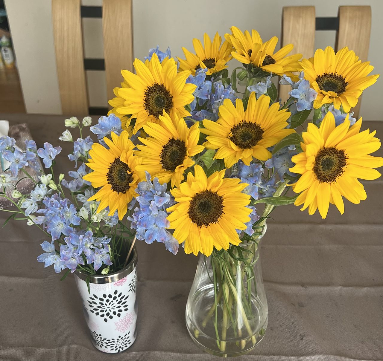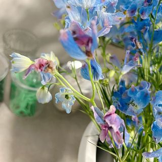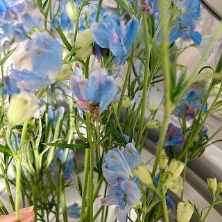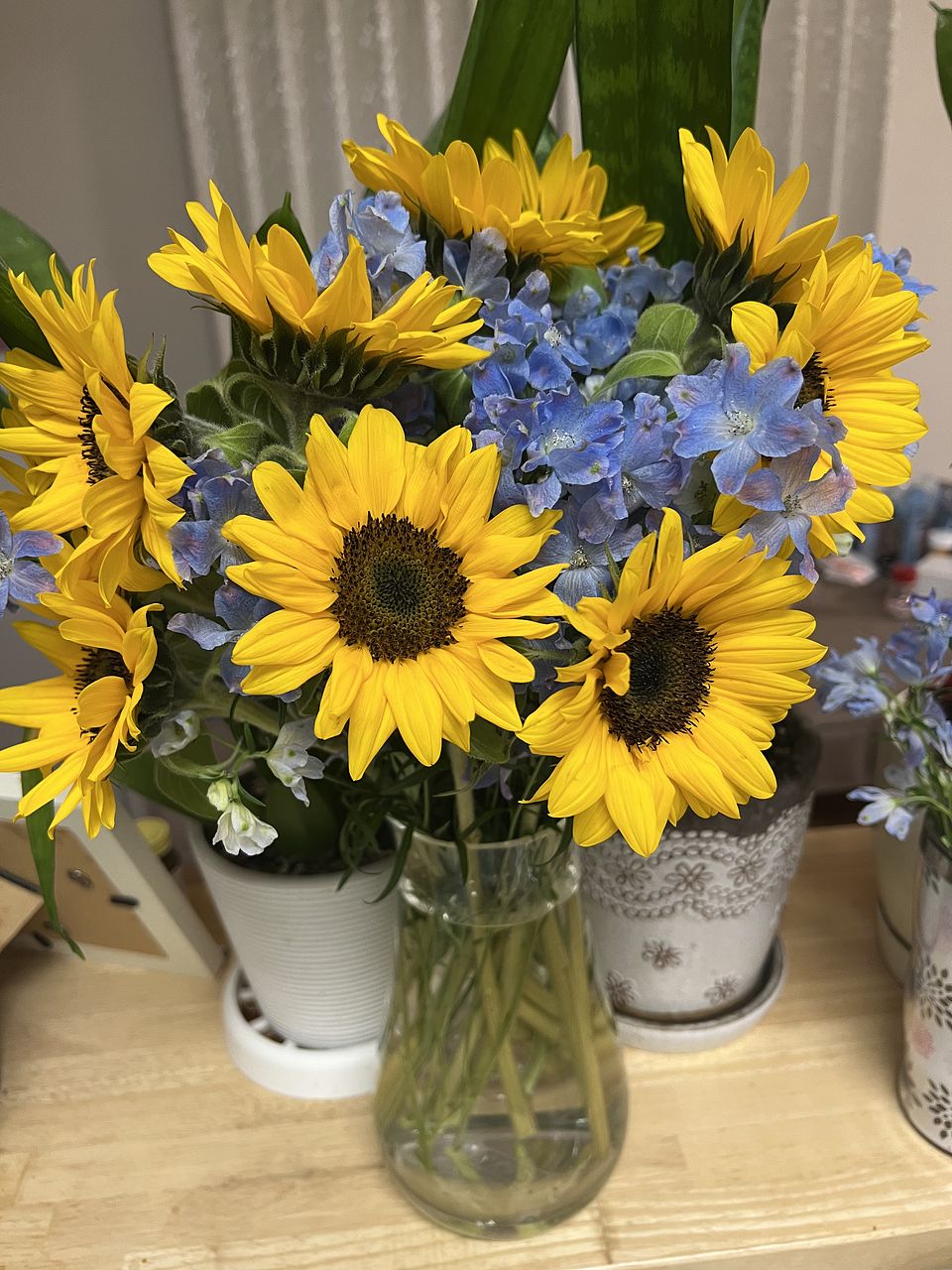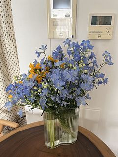 鮮やかな黄色とかわいい水色で元気になれます🌻🪻 箱から出したらボリュームがすごすぎて、我が家は4つの花瓶に入れました!大満足です😳✨ いつも新鮮なお花をありがとうございます💛