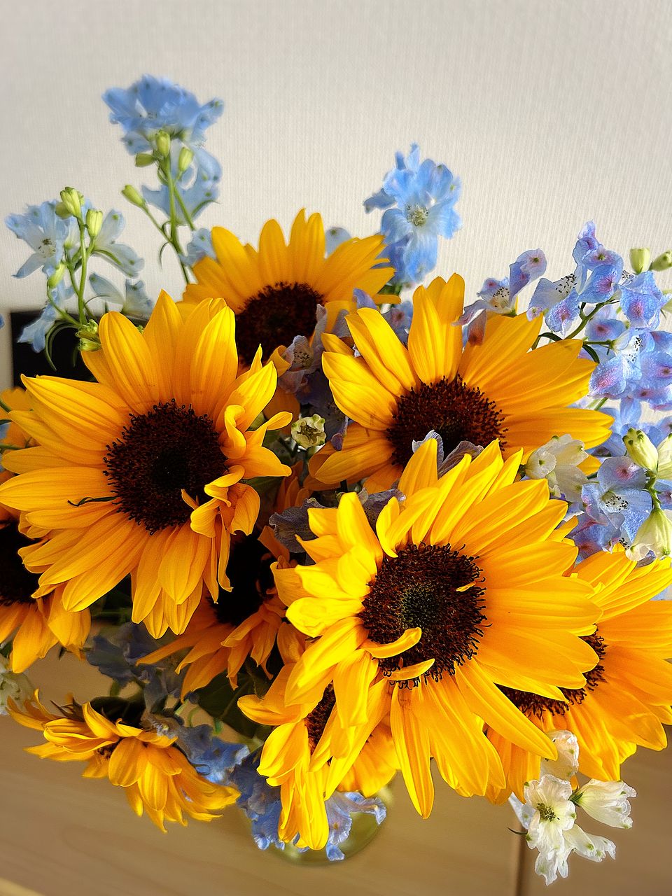 元気なひまわり🌻と爽やかブルーのデルフィニウム🩵 この組み合わせは初めて購入しましたが、買って良かったです!
