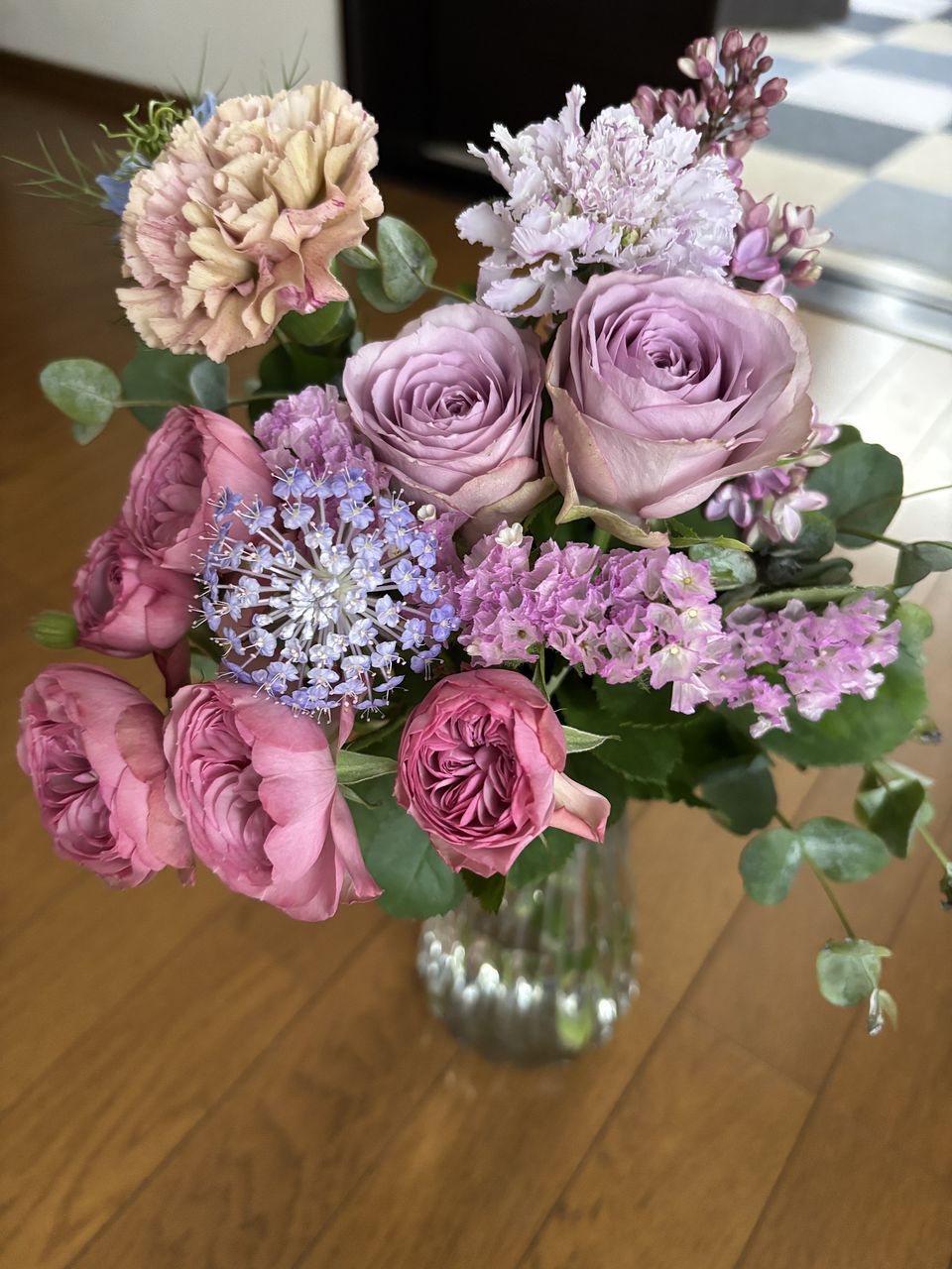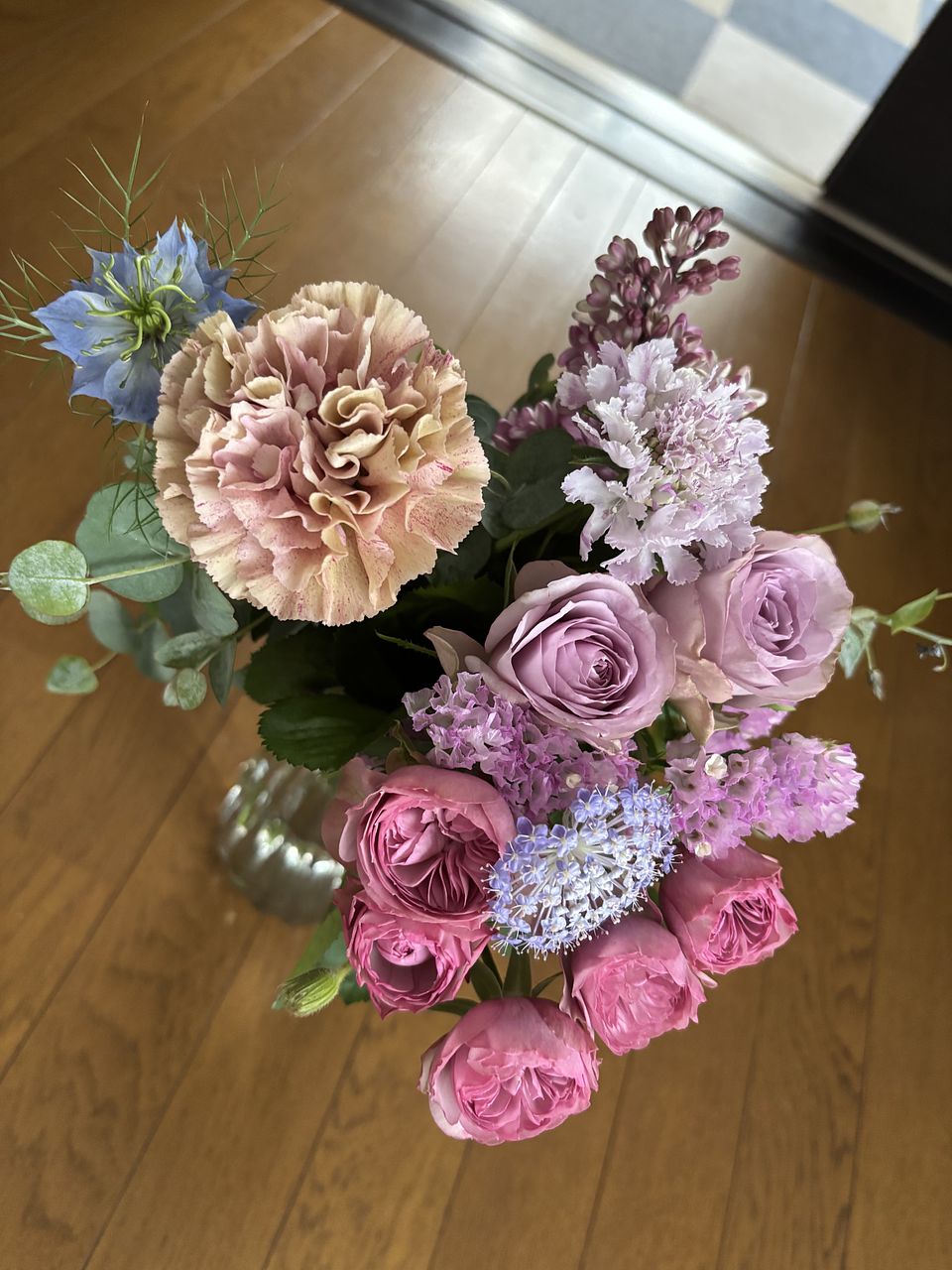 ラベンダーのやさしいパープルに、ミルクみたいなベージュをとろりと重ねた「ラベージュカラー」のおまかせブーケ🤍
