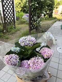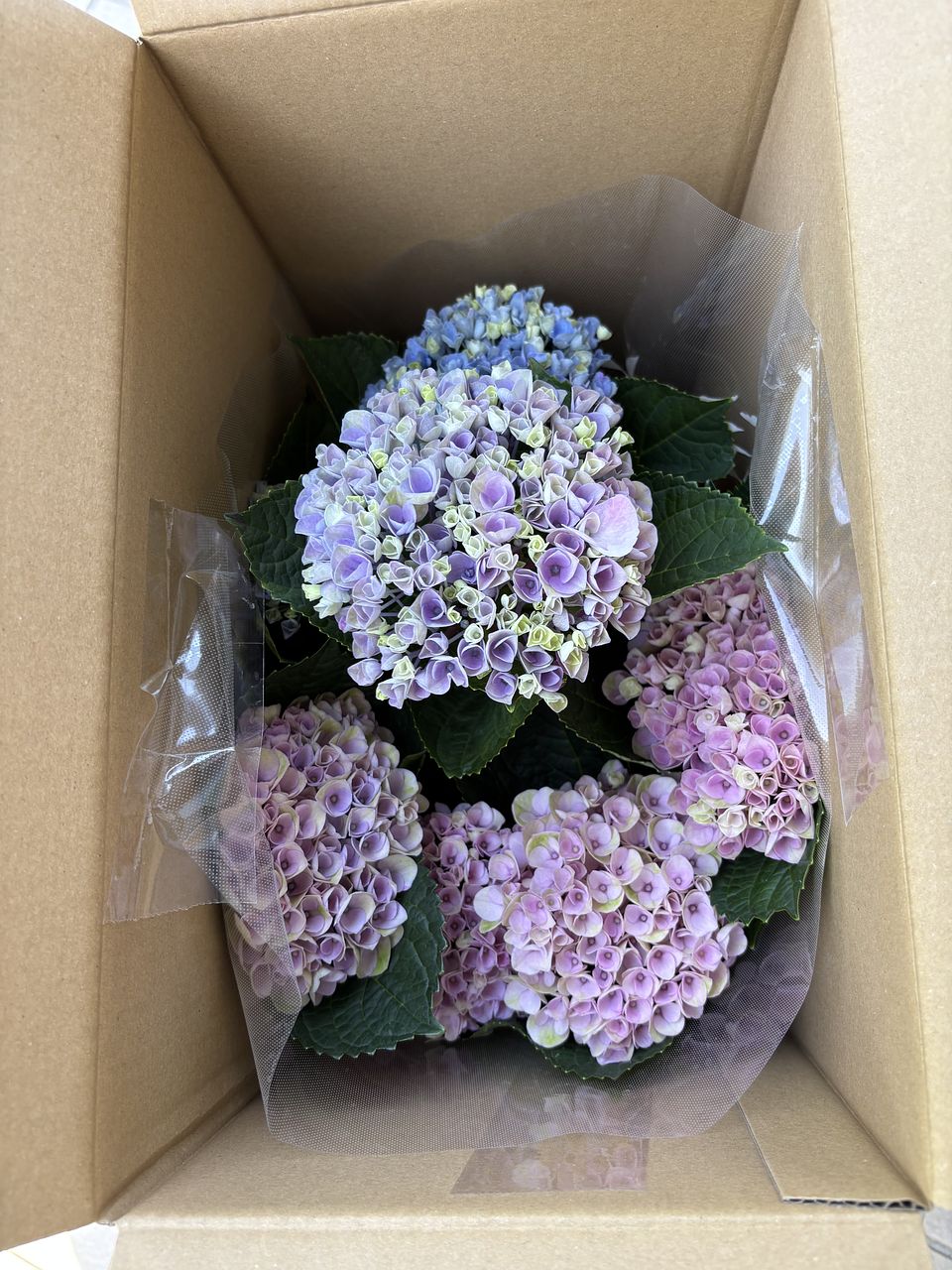微妙な色合いの美しい花、元気な茎と葉、期待以上の紫陽花の花鉢に感激です。 生産者の皆様の丹精込めたお品をお譲りいただき、ありがとうございました。