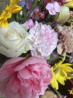 スパイラルに組まれていて葉の処理もしてあるのでそのまま飾って楽しめます。たっぷり入っているので華やかです。内容は毎回おまかせですが、色の雰囲気は同じ雰囲気でお届け予定です。お楽しみに!