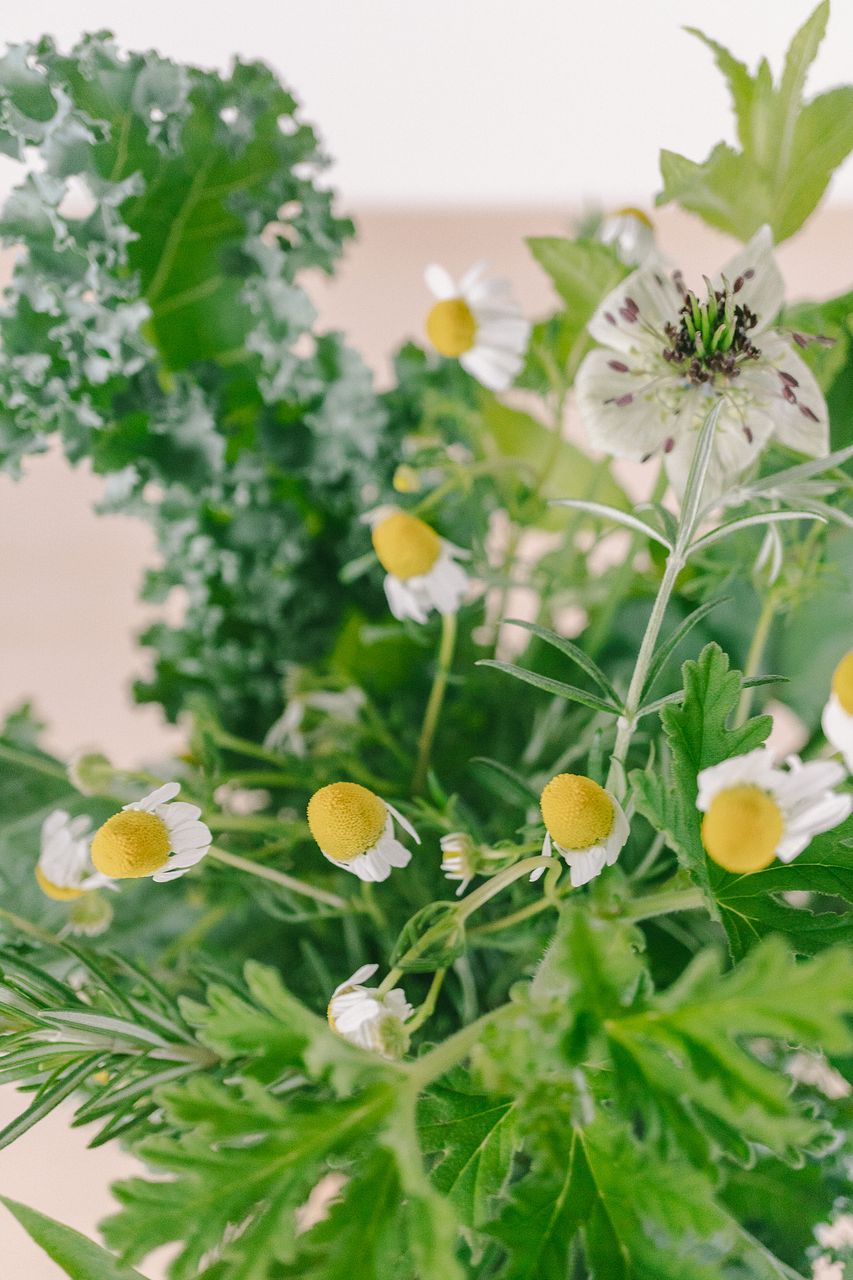ナチュラルなグリーンに、ふんわりとした花々が重なり合い、やわらかな雰囲気に仕上げました🫧