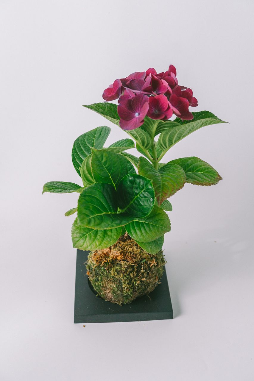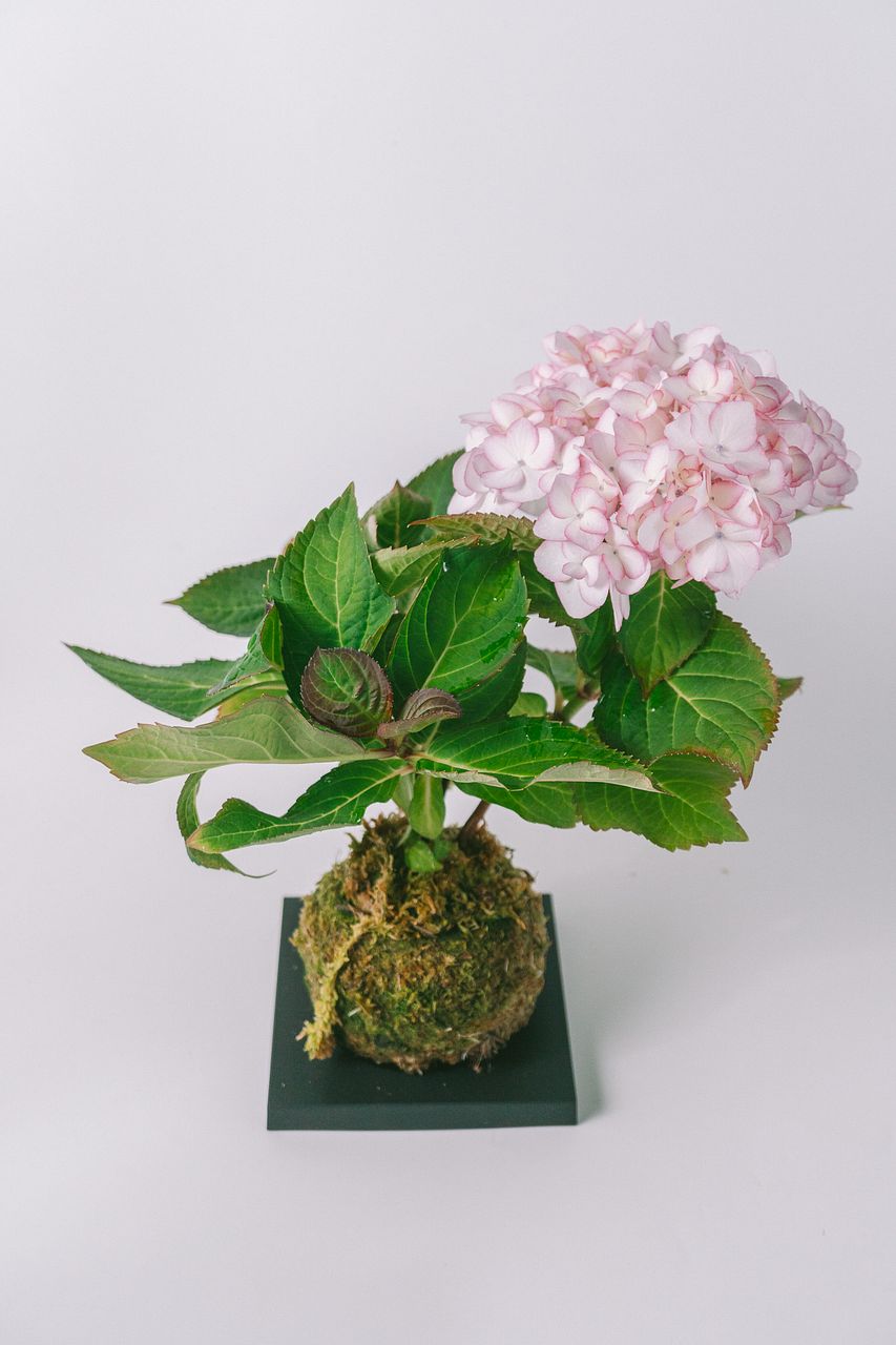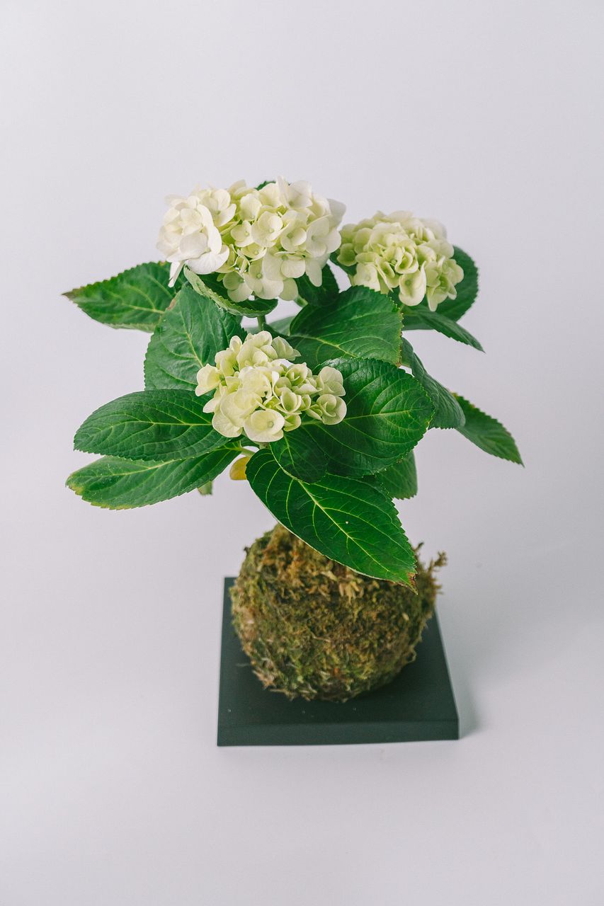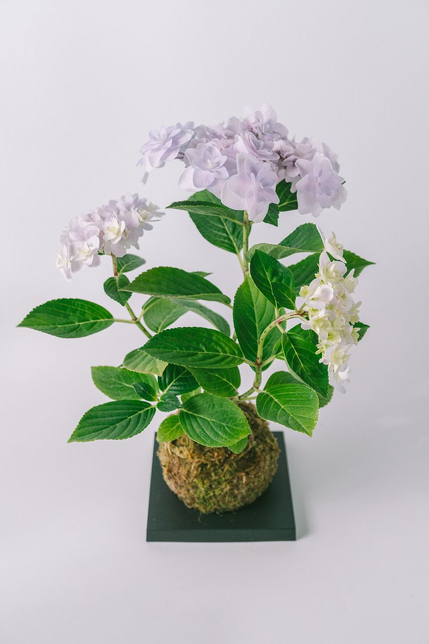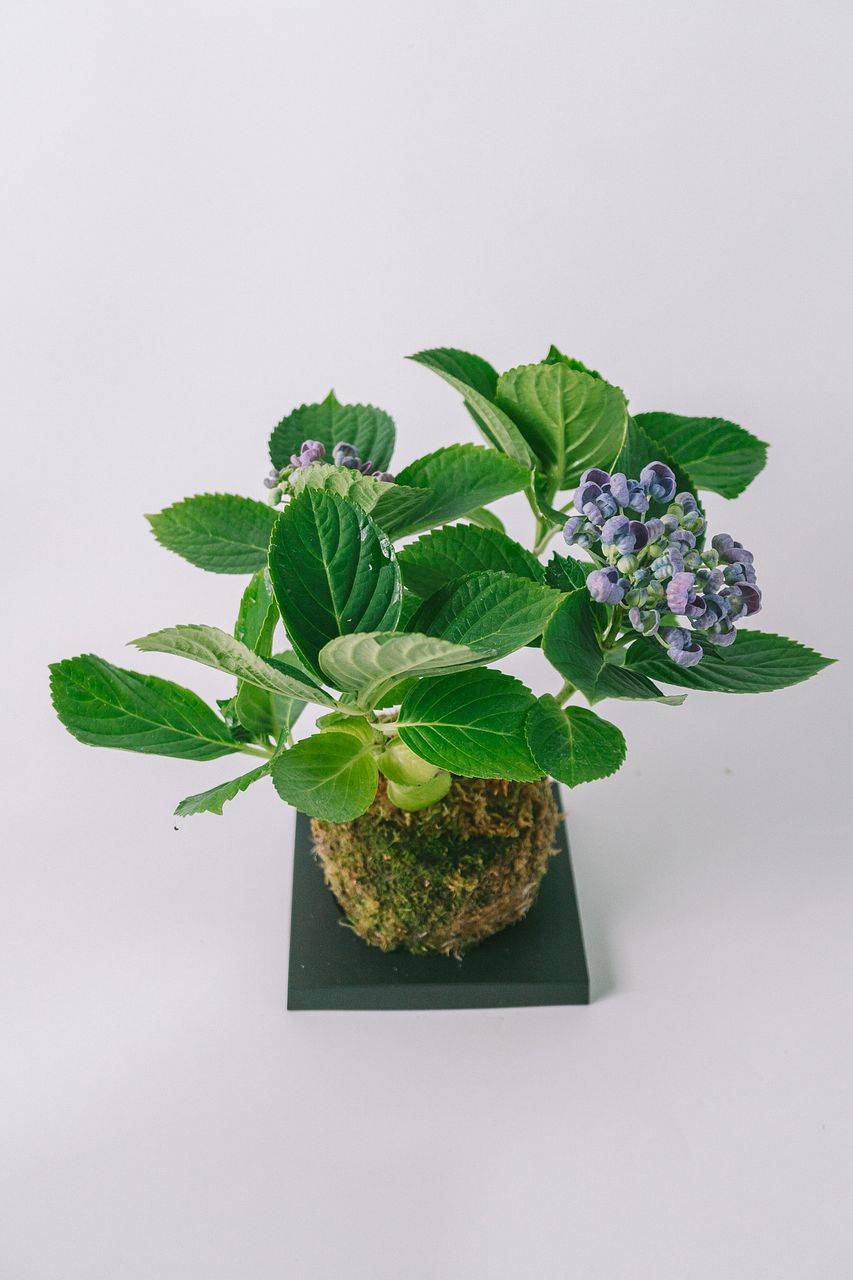 丸く整えた苔玉に、紫陽花を合わせました🌱