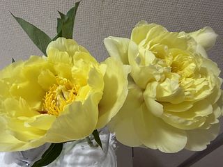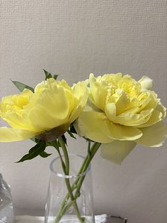 芍薬は苦手意識がありましたが、初めて満開になり嬉しかったです。 優しいレモンイエローでボリュームもあり、とても綺麗でした。 花持ちは良くないけど満足感がありました。