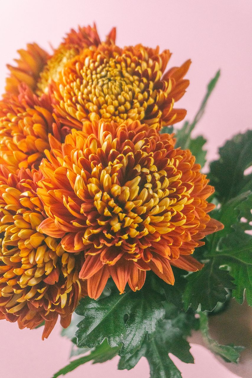 ダークオレンジからイエローへのグラデーションが美しい、シックで大輪のクラシックマム「トムピアーズ」。