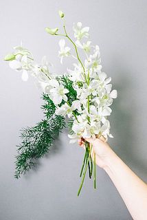 国産のデンファレ「リナホワイト」と流れる姿がうつくしいロングサイズのアスパラ「スプリングゲーリー」のリゾートブーケ🏝️