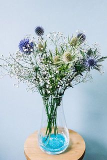 かすみ草「ベールスター」はまるで空に煌めく星のよう🌟エリンジウムは「オリオン」、「シリウスクエスター」と星の名前にちなんだ品種をチョイスしました。
