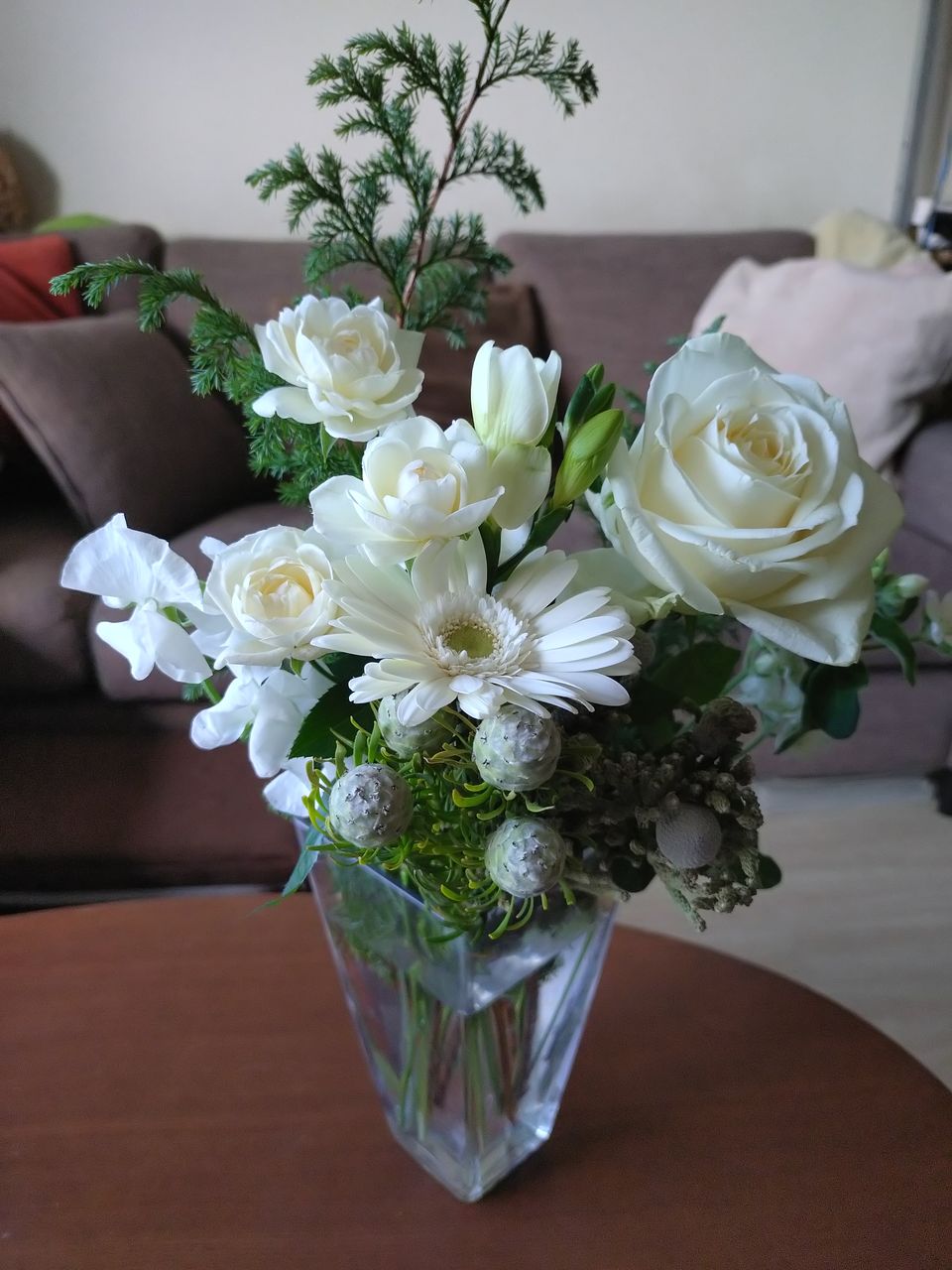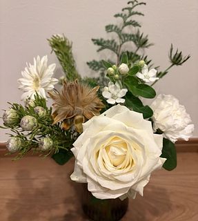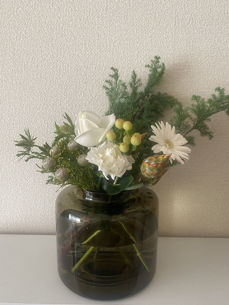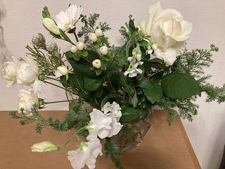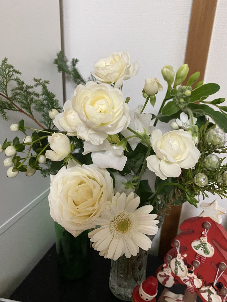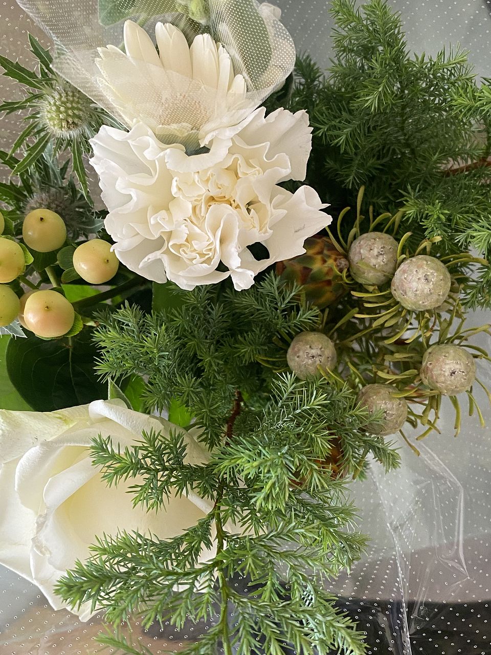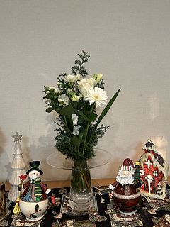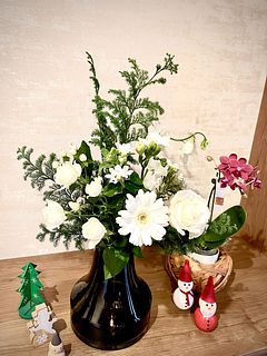 ヒムロ杉の下葉と11月に購入した"森のクリスマス"に入っていたネイティブフラワーでミニスワッグも作れました🌲10月に購入した"ミセスブラウン"もまだ蕾が2つあり少しずつ咲いてくるのが嬉しいです。今回の"ホワイトクリスマス"は落ち着いた感じが気に入ってます🤍いつも癒しをありがとうございます💜