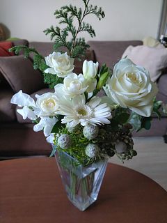 届いた時箱の上部が潰れて濡れてましたが、ヤマト運輸の方が中を確認して下さいと言われたのでその場で開封したところ、大丈夫でした。丁寧な梱包だったのでエコゼリーから漏れてることもなくお花は何ともありませんでした。不思議…🤔