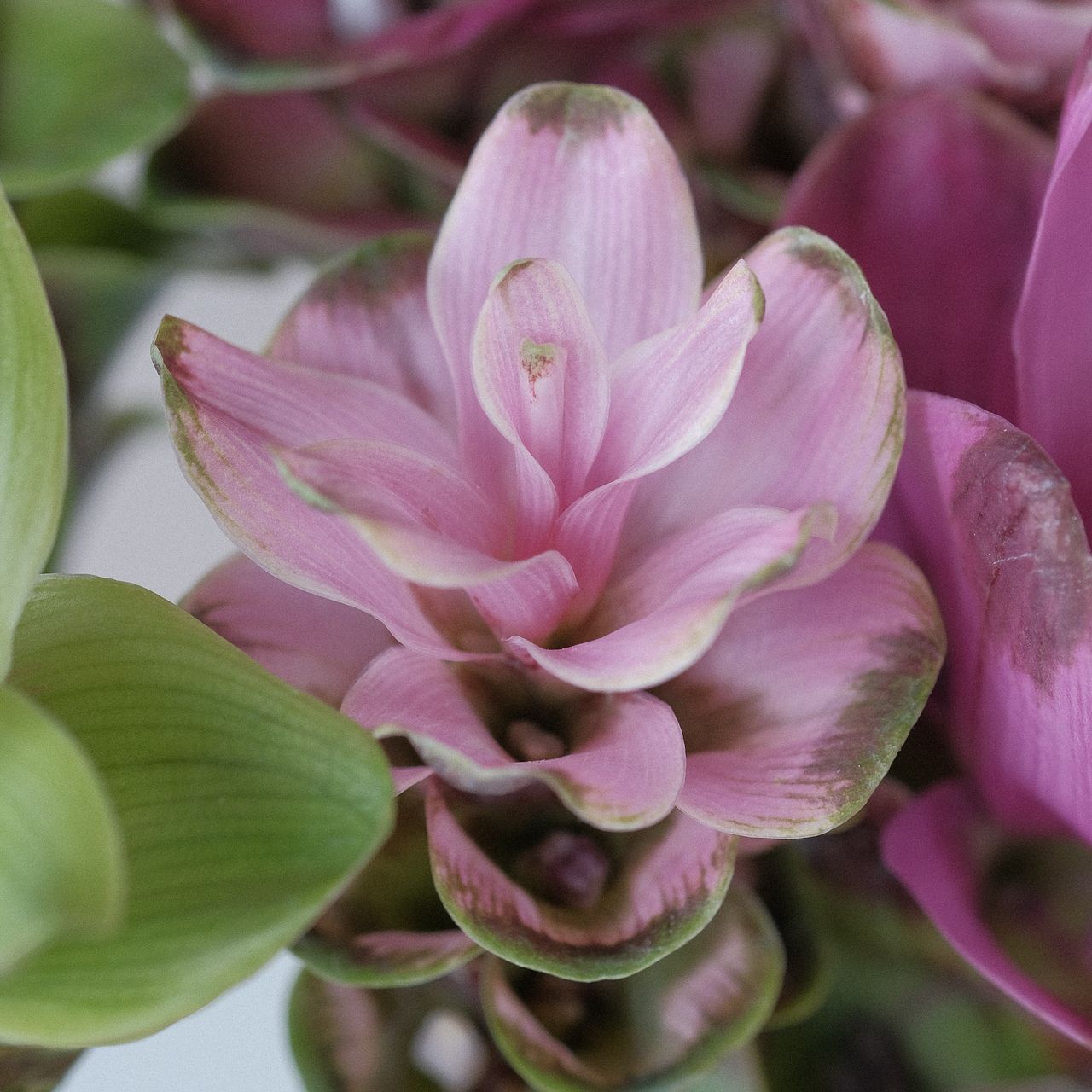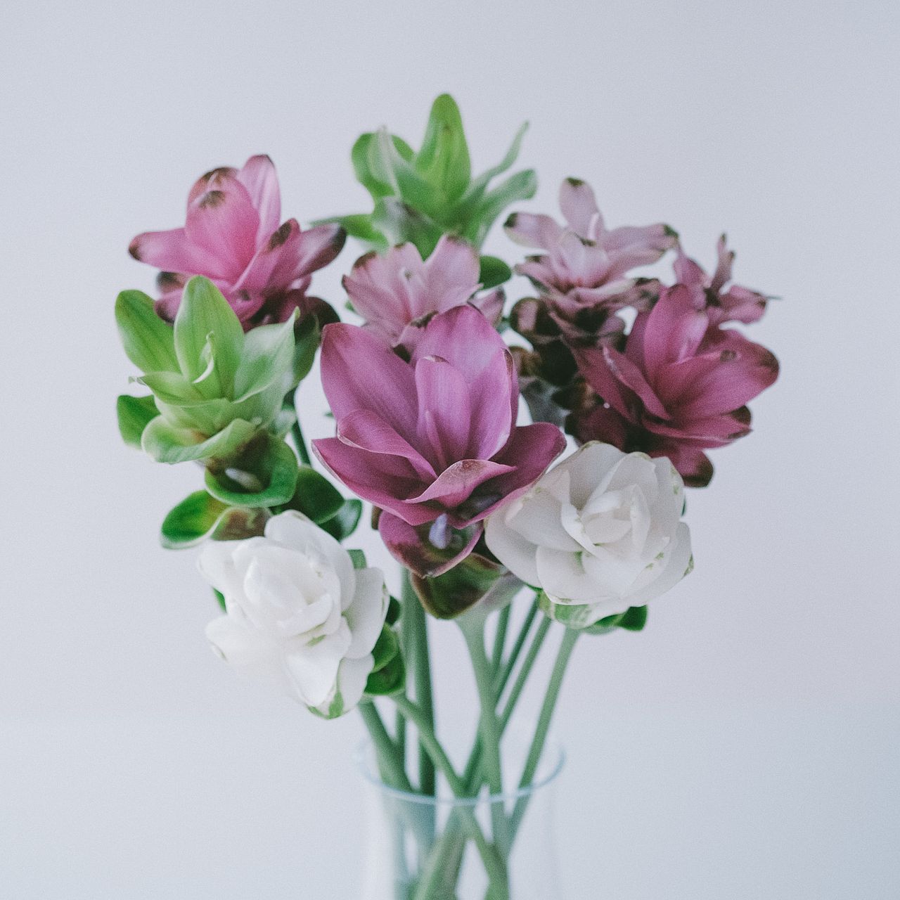 熱帯アジア原産のクルクマは多湿な環境を好む植物なので、毎日霧吹きをしてあげて。上手にお世話ができると、苞の中からはかわいい花を咲かせることがあります。ぜひ長く楽しんで!