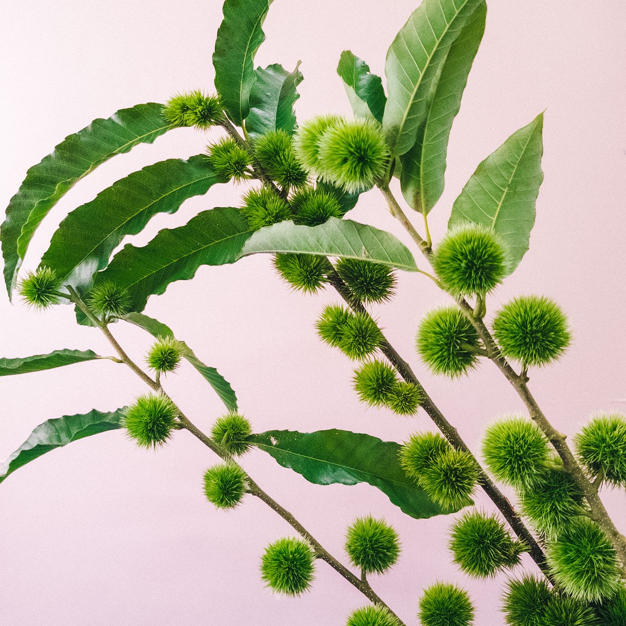 1つの枝からミニサイズのイガグリがたっぷり連なっているのが特徴です。