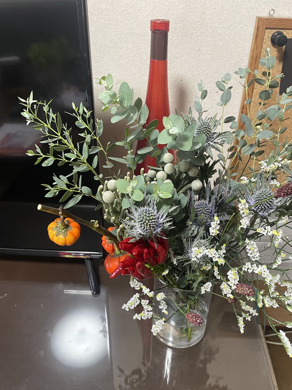 ハイブリットスターチスやワックスフラワーも一緒に🕊️お部屋になじみやすいカラーリングを意識しました。