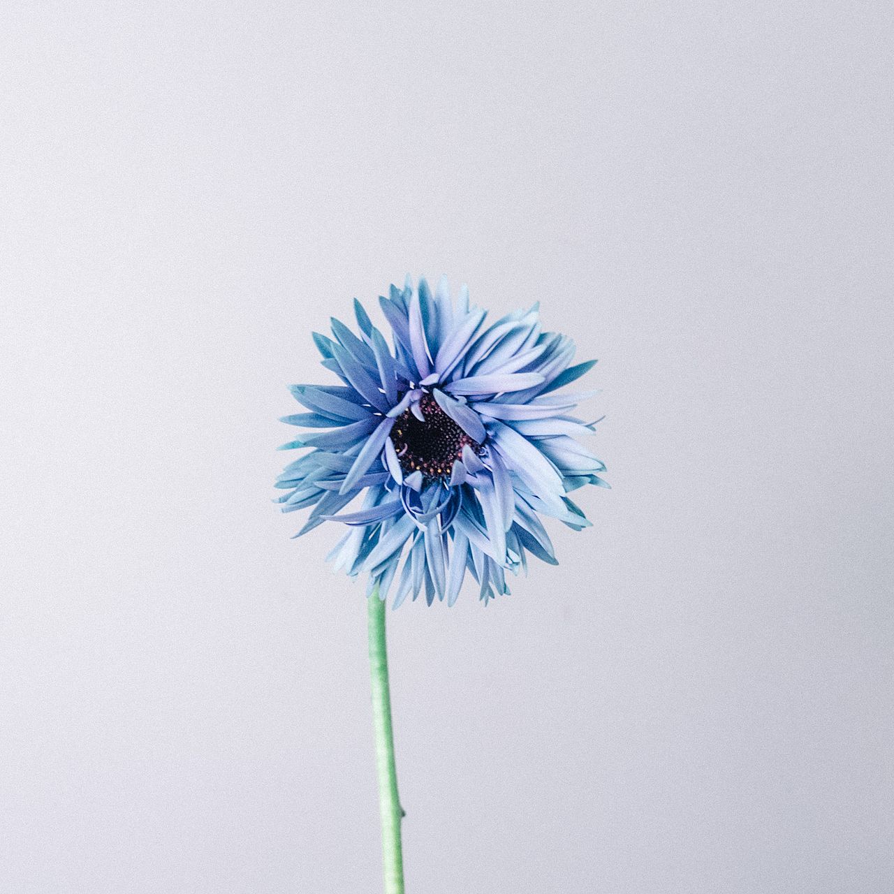 ネイビーのおしゃれな染めのガーベラ「モンスターサリー」を束ねて💙ニュアンスカラーが魅力的!