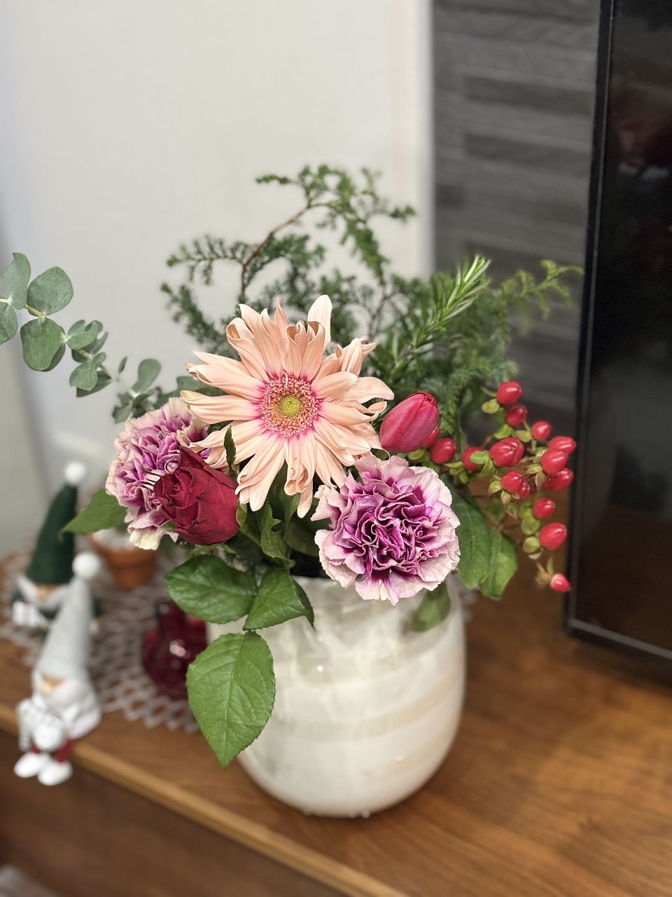 クリスマス🎄カラーのとてもかわいいお花でした。ガーベラがあまり見ないタイプでかわいく、赤いお花とグリーンがクリスマス感をだしてくれていまふ。クリスマスまでに受け取れてよかったです!