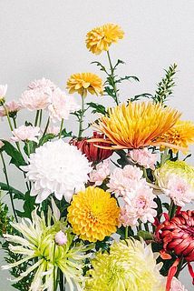 - 1輪咲きのマムは花首が折れやすいため、優しく扱って。