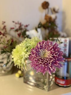 大ぶりのマムが5本と、小さいのが1本。状態も良かったです! 年末年始を綺麗なお花と過ごせて嬉しい〜っ