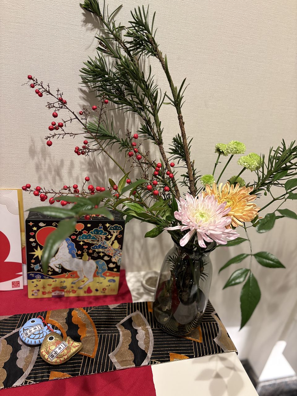 素敵なマムが届きました^_^家の南天と、花瓶にお正月用に飾りました💐