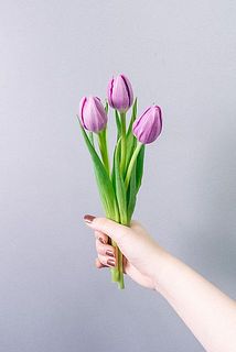 今回は、紫色のチューリップを3本お届けいたします。花言葉は「気高さ」。