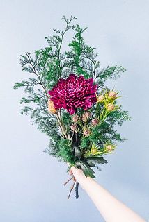 ワインカラーのマムに、つぶつぶのリューカデンドロンが果実のようなブーケをご用意🍓🍇サングリアをイメージしました。