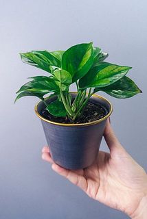 人気のポトス「グローバルグリーン」のミニサイズをシルバーのポットに入れてお届け!🌱